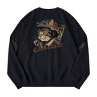 위트 있고 역동적인 스트리트 감성 고양이 그래픽과 일본 전통 문양 디테일, “KaraKu” 자수 로고와 팔꿈치 스웨이드 패치로 심플하면서도 고급스럽고 실용적인 스웨트셔츠.