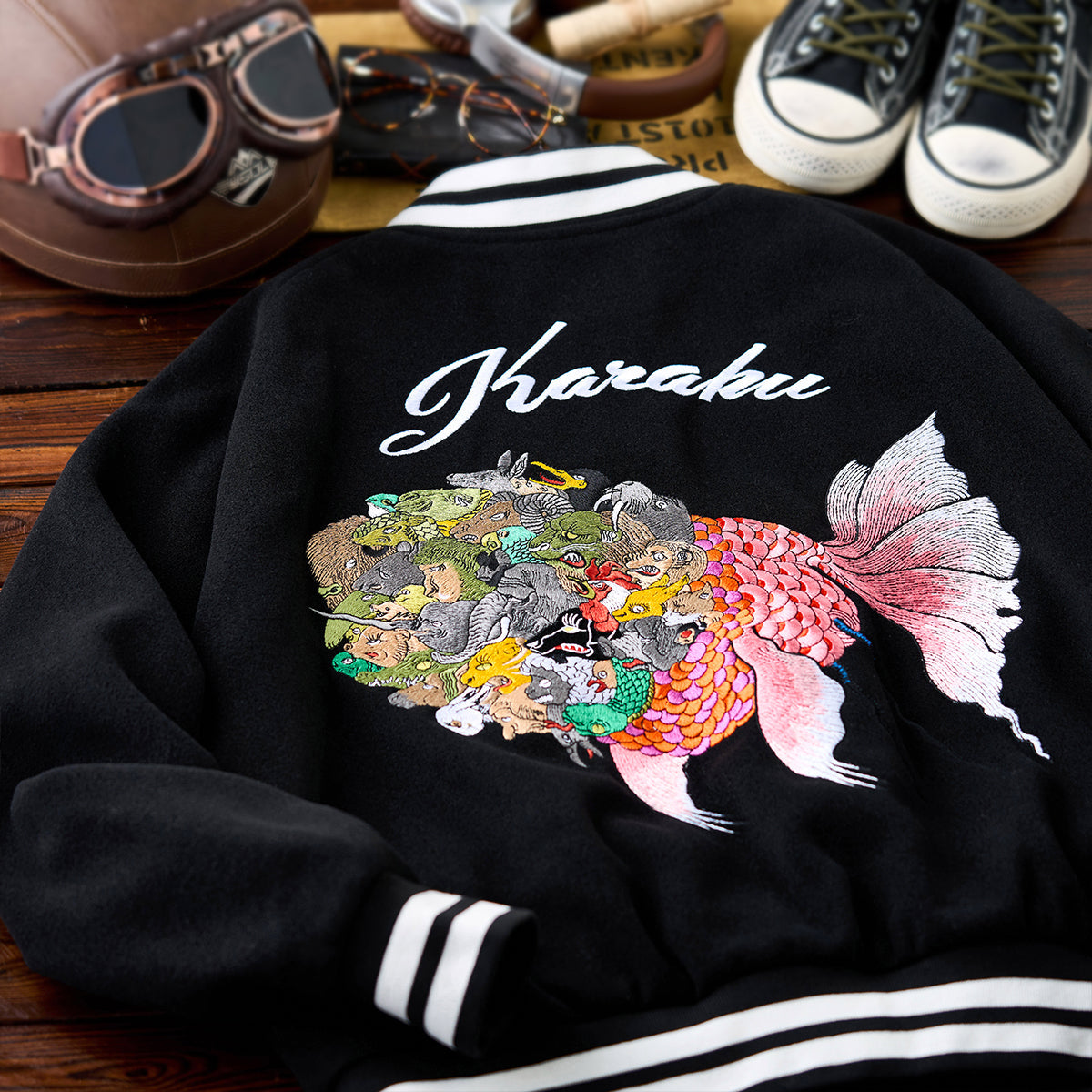 KARAKU×石黒亜矢子「백두어」자수 우키요에 스타디움 점퍼