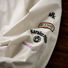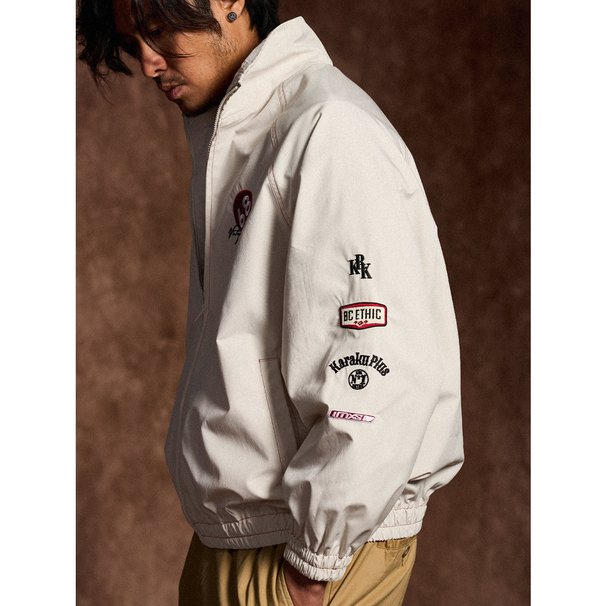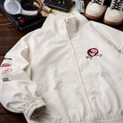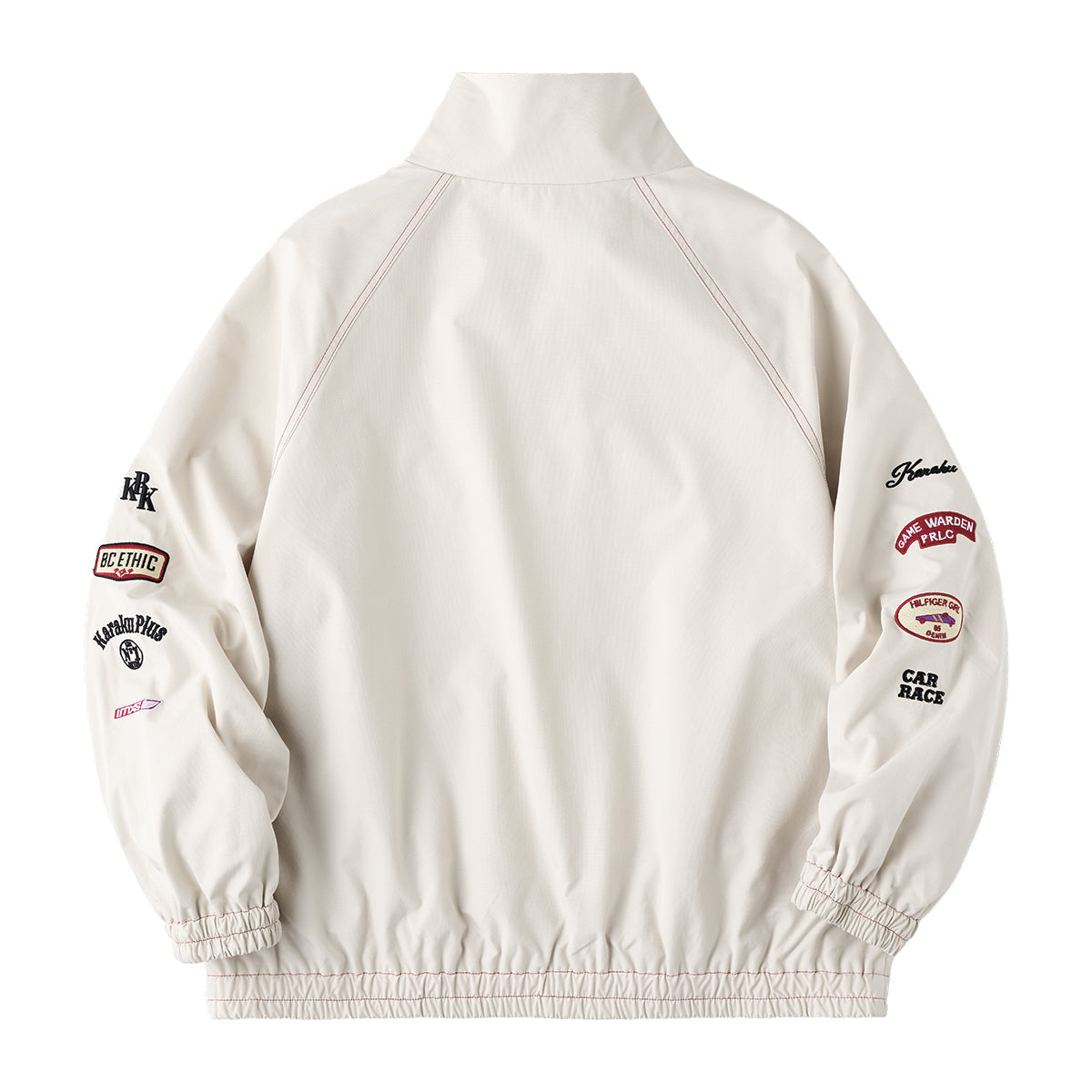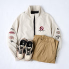 레이싱 디테일 자수 & 와펜 장식 스탠드 칼라 자켓
