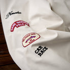 스탠드 칼라와 밴드 처리로 방풍과 착용감을 강화하고, 가슴 ‘68’ 자수와 소매 와펜 디테일로 레이싱 감성과 스트리트 무드가 어우러진 자켓.