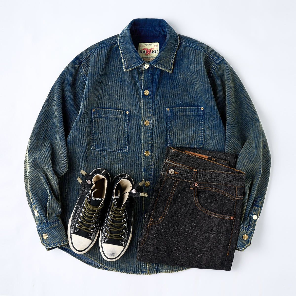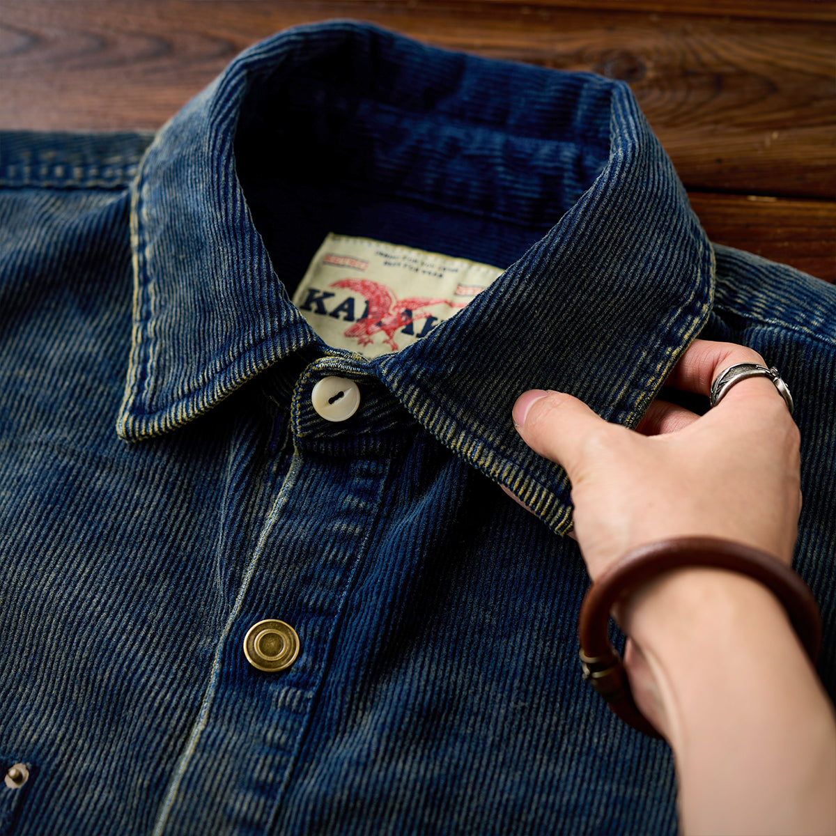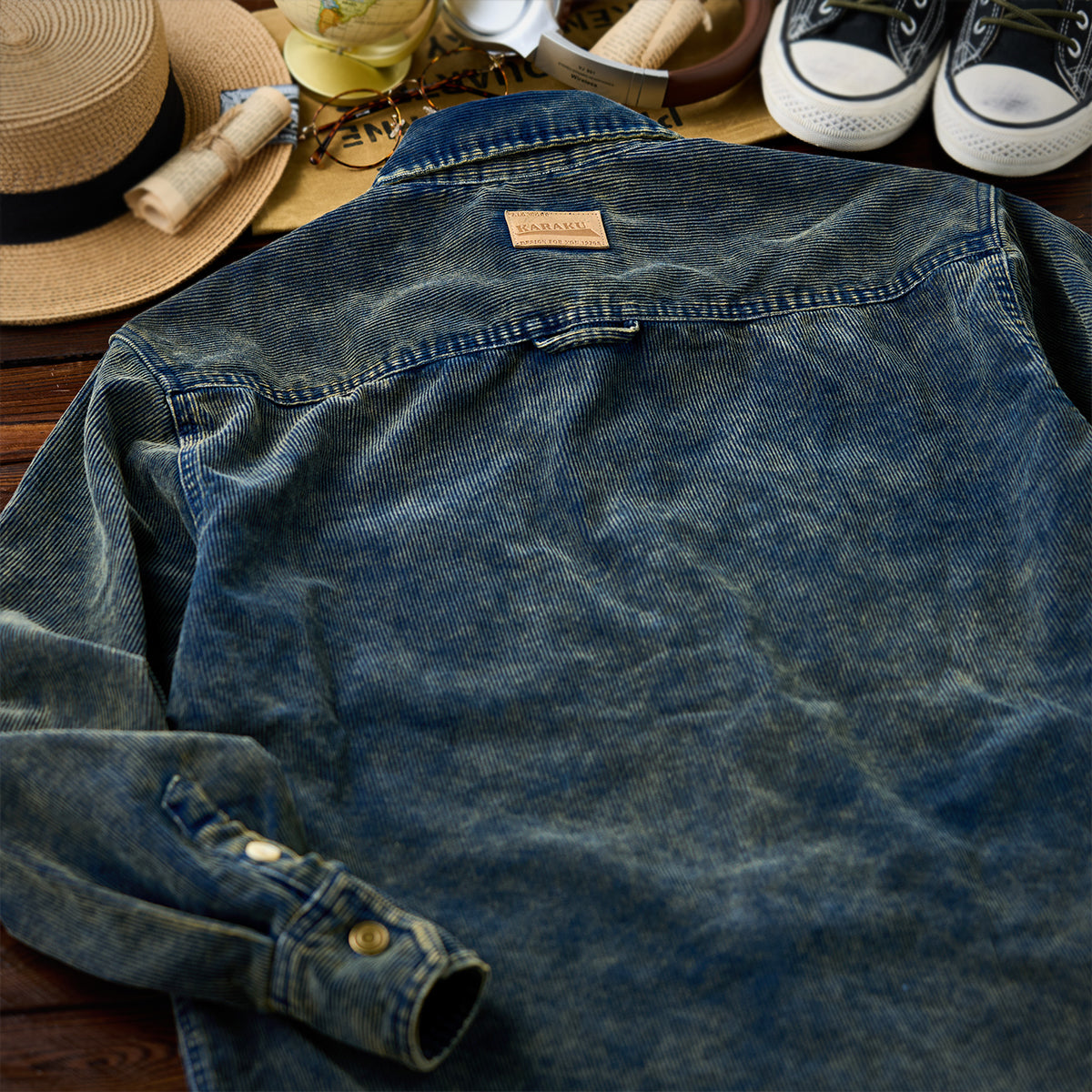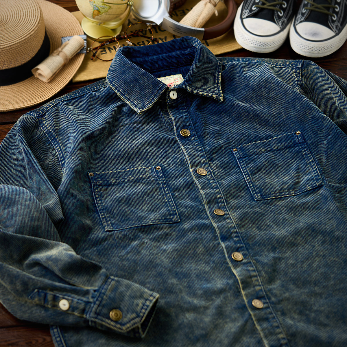 워시드 가공 레더 태그 코듀로이 데님 워크 셔츠