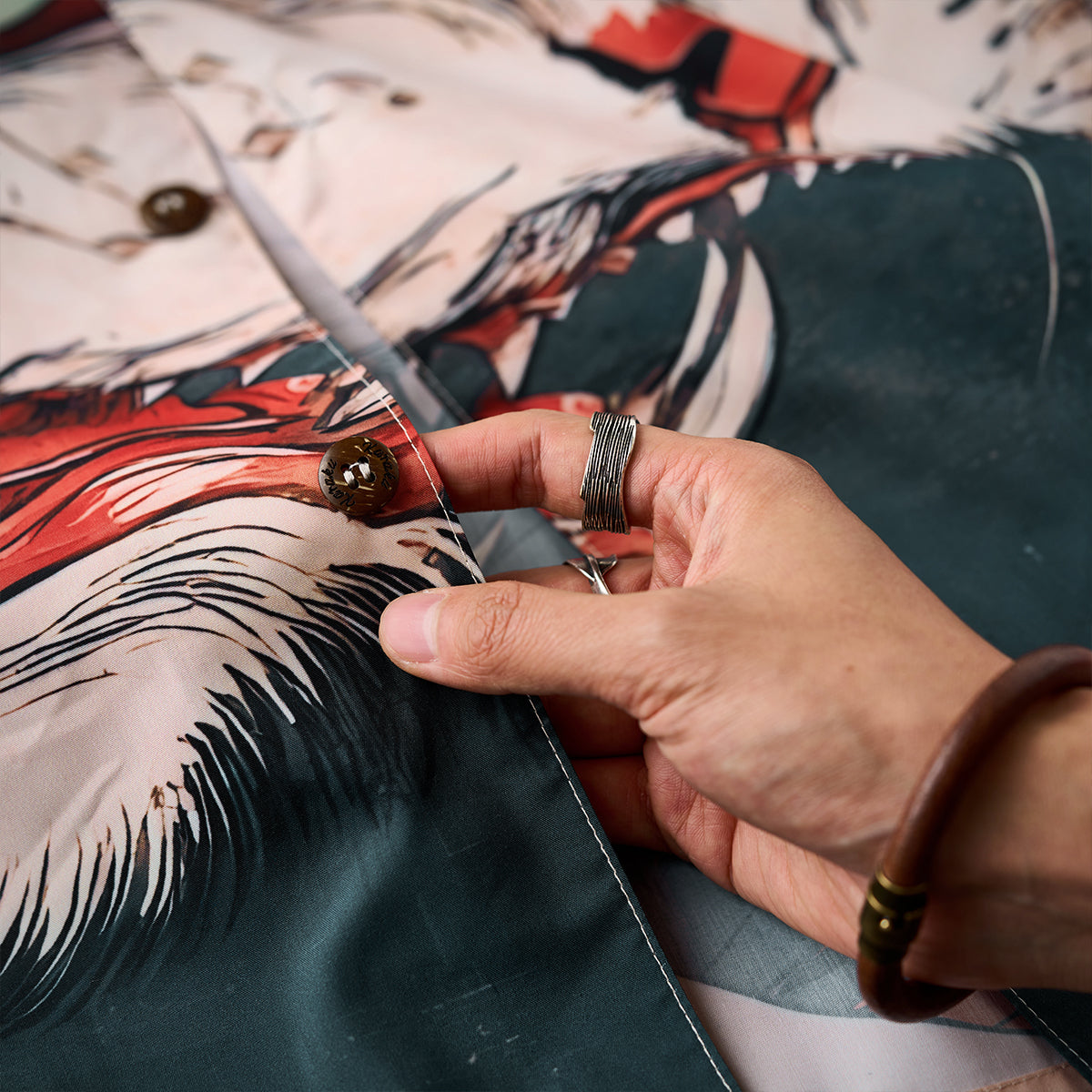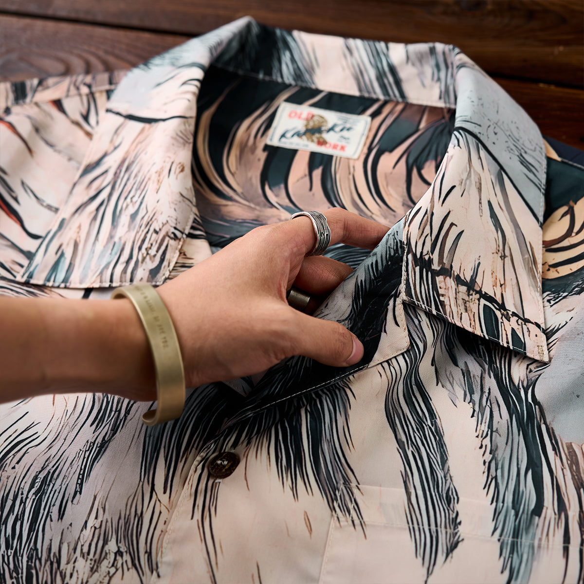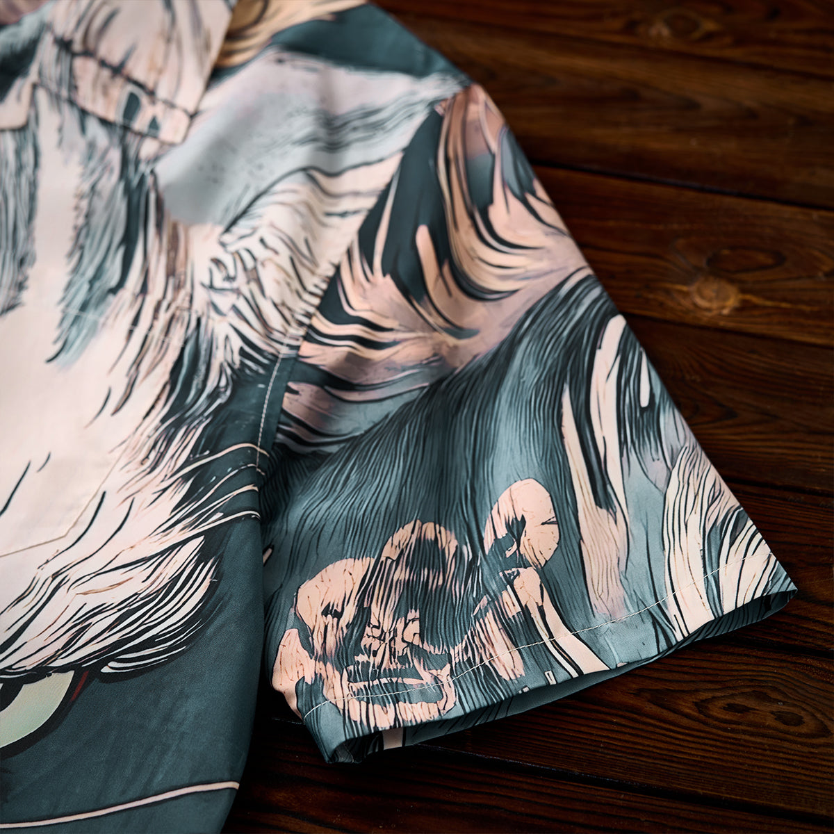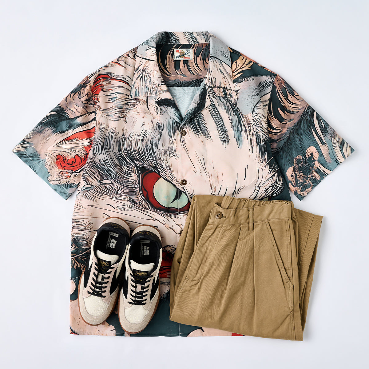일본 요괴 고양이를 모티브로 한 우키요에풍 프린팅과 고급 페이크 텐셀 소재가 돋보이는 감각적인 셔츠입니다.