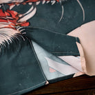 우키요에 스타일의 프린팅과 깊이 있는 블루, 열정적인 레드 컬러 배색이 어우러져 시선을 사로잡습니다. 아메카지 스타일과 전통적인 우키요에풍 디자인의 조화가 인상적입니다.