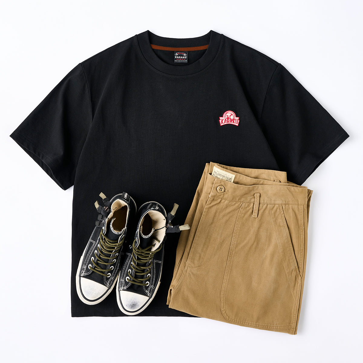 살짝 위트 있는 아메카지 감성이 돋보이는 올 시즌 추천 아이템! 트렌디한 레트로 무드를 손쉽게 연출할 수 있으며, 데일리룩은 물론 아웃도어 스타일에도 폭넓게 활용 가능한 티셔츠입니다.
