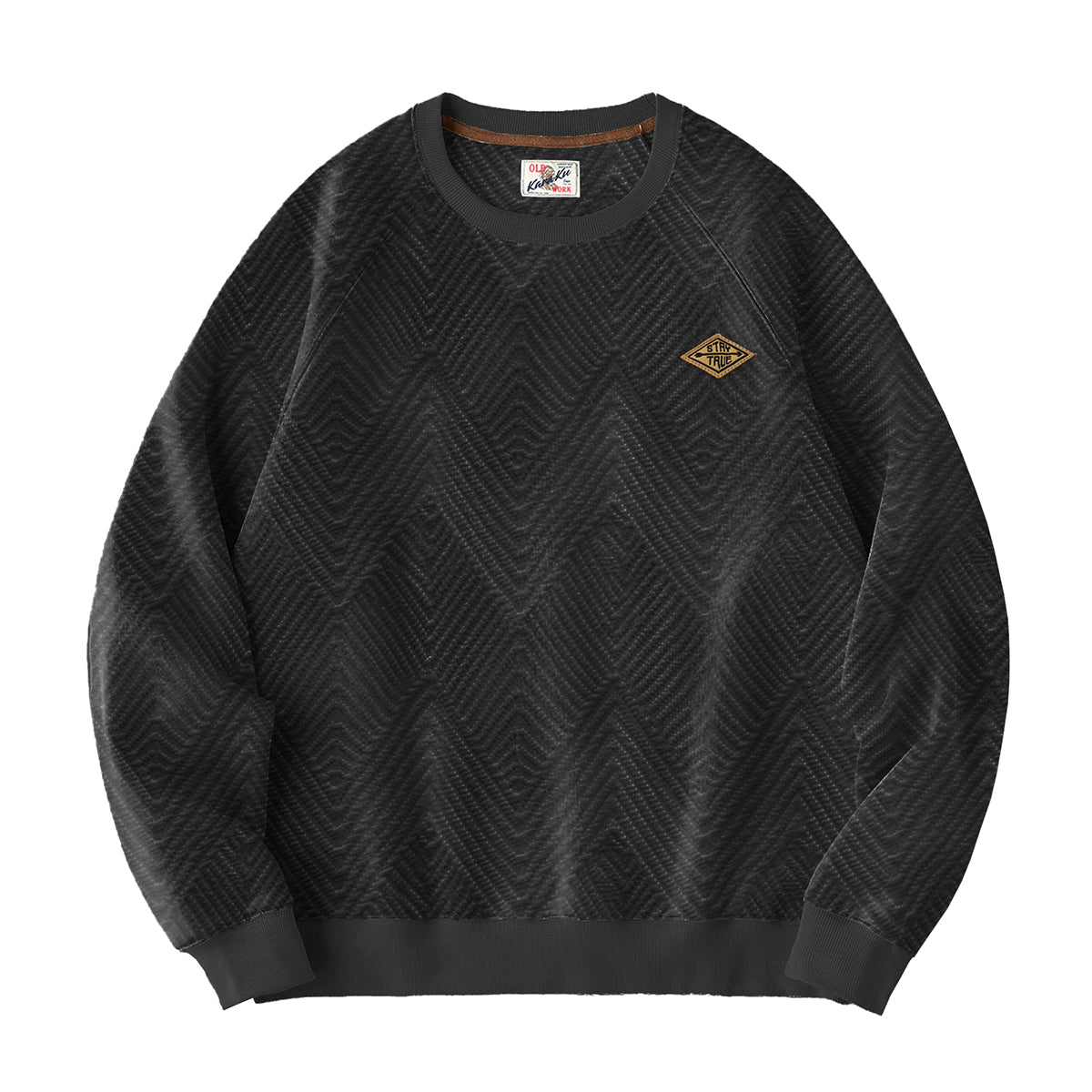 【사전예약】「STAY TRUE」자수 와펜 지그재그 자카드 니트 스웨트