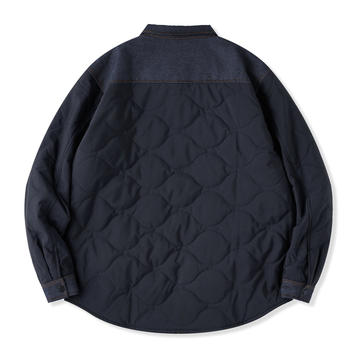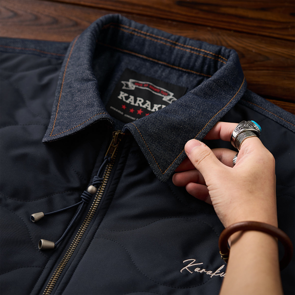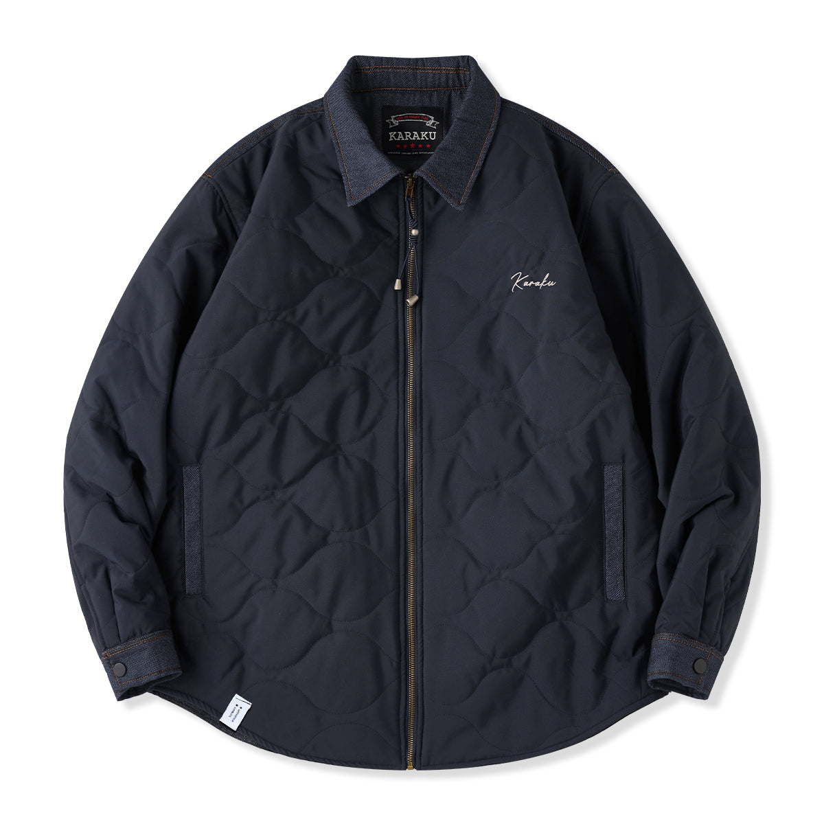 【사전예약】「KaraKu」로고 자수 데님 배색 호박 퀼팅 솜 안감 자켓