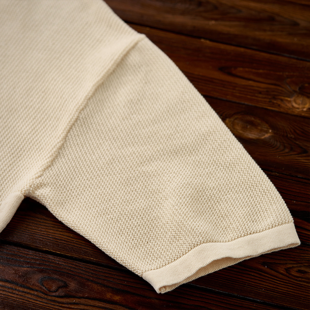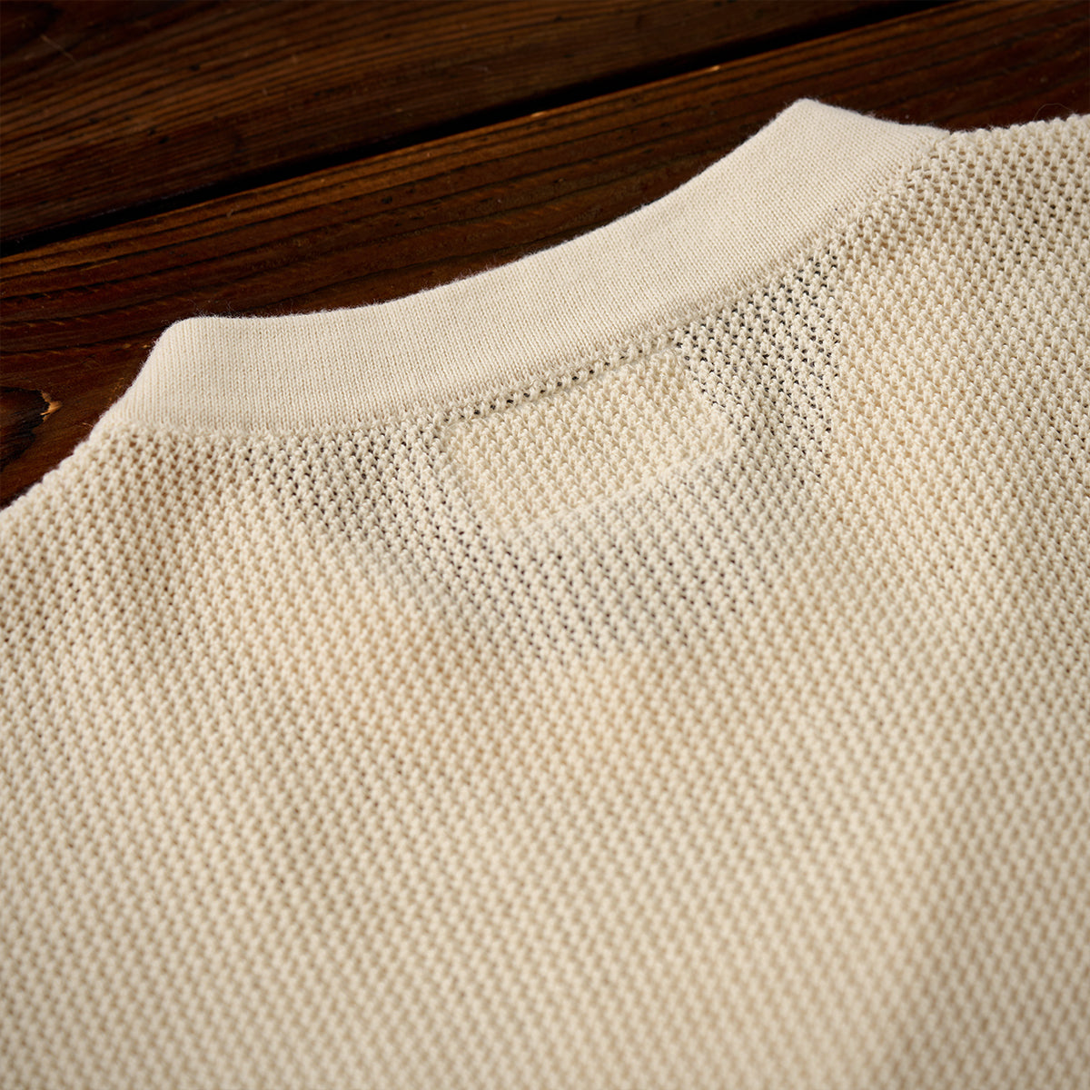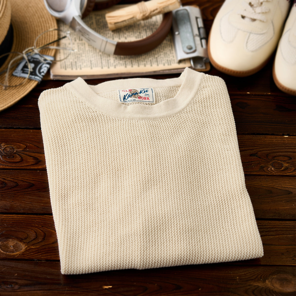 시스루 짜임과 립 디테일로 고급스러운 분위기를 더한 니트 티셔츠. 가볍고 통기성이 좋아 봄·여름에도 쾌적하게 착용할 수 있는 아이템입니다.