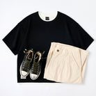 V 가젯 디테일 페이크 레이어드 티셔츠