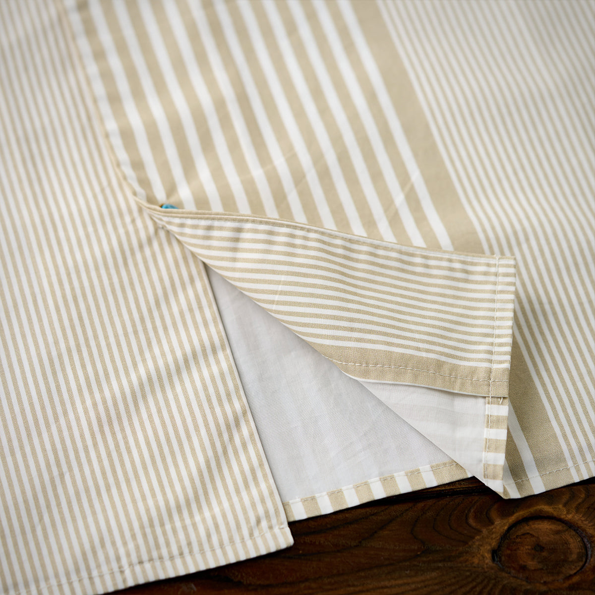 서로 다른 폭과 간격의 스트라이프가 조화를 이루어, 단조로움 없이 다채로운 시각적 리듬과 포인트를 완성했습니다.