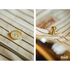 소재는 고품질의 초장면으로 알려진 기자 코튼으로 만들어진 사일로 스판사를 사용하여 구미를 중심으로 일본에서도 도입되고 있는 새로운 정방기술에 의한 실로, 특히 세번수의 쌍실을 만들기에 적합하며 섬유길이가 긴 기자면을 특수방적으로 꼬아 결이 세밀하고 매끄럽고 보풀이 적고 적당한 광택이 있는 원단으로 마무리해 줍니다. 샌딩 가공을 사용해 미세한 눈의 샌드페이퍼가 감긴 롤러를 원단 위에서 굴려 원단 표면을 닳게 하는 수년간 낡은 감촉 효과를 얻을 수 있습니다.