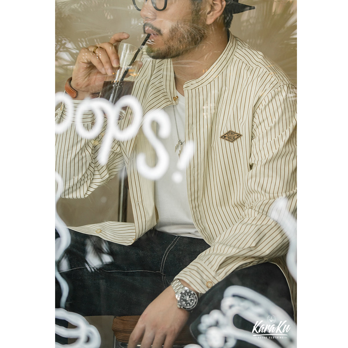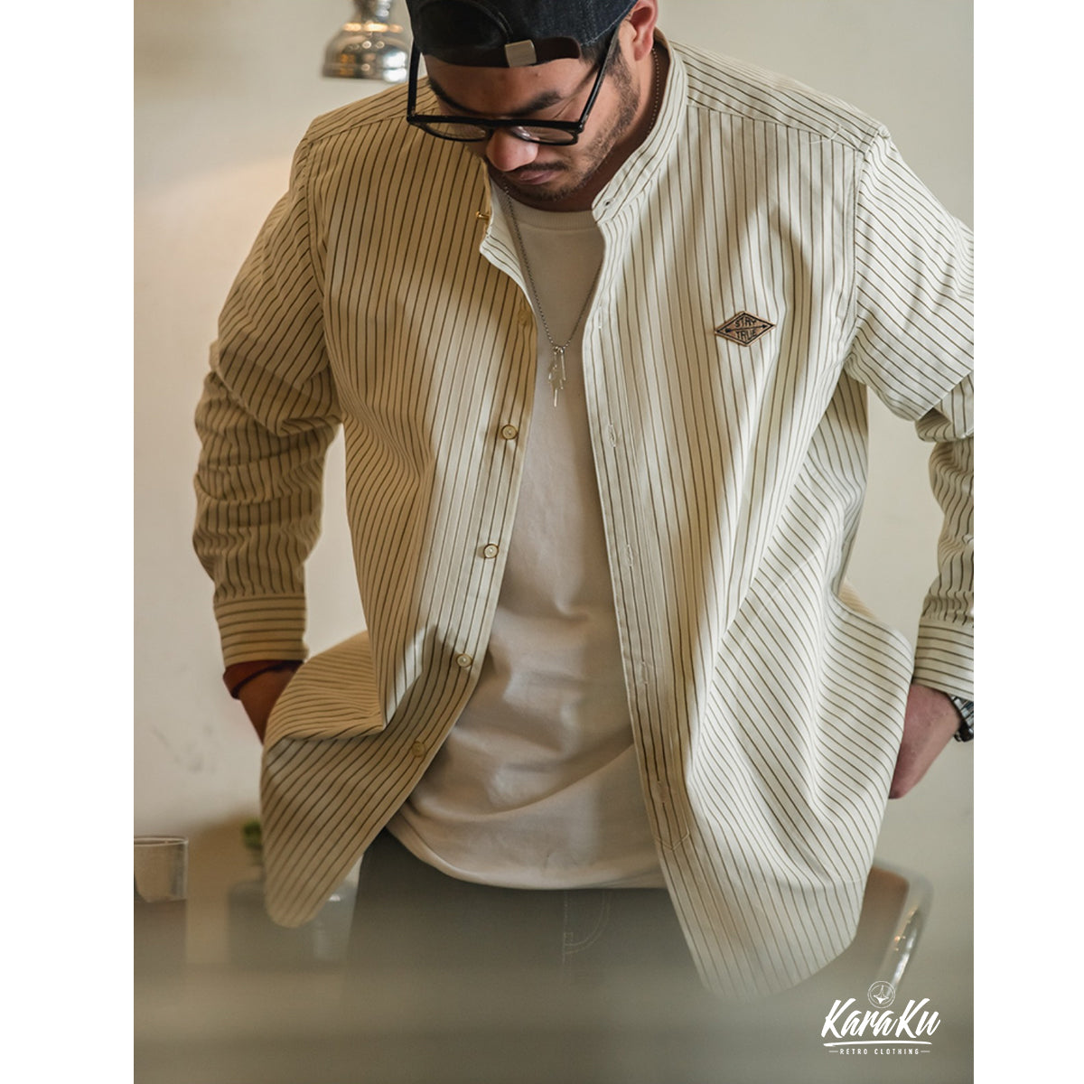 본 아이템은 프론트 좌측 가슴 부분에 영문 'stay true' 자수 배지를 은근하게 배치 및 캐치하며 레트로 느낌의 베이스볼 셔츠의 분위기가 더해져 트렌드의 스트리트와 빈티지 테이스트.