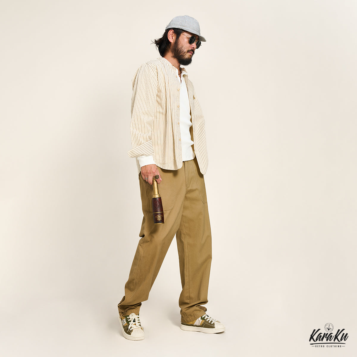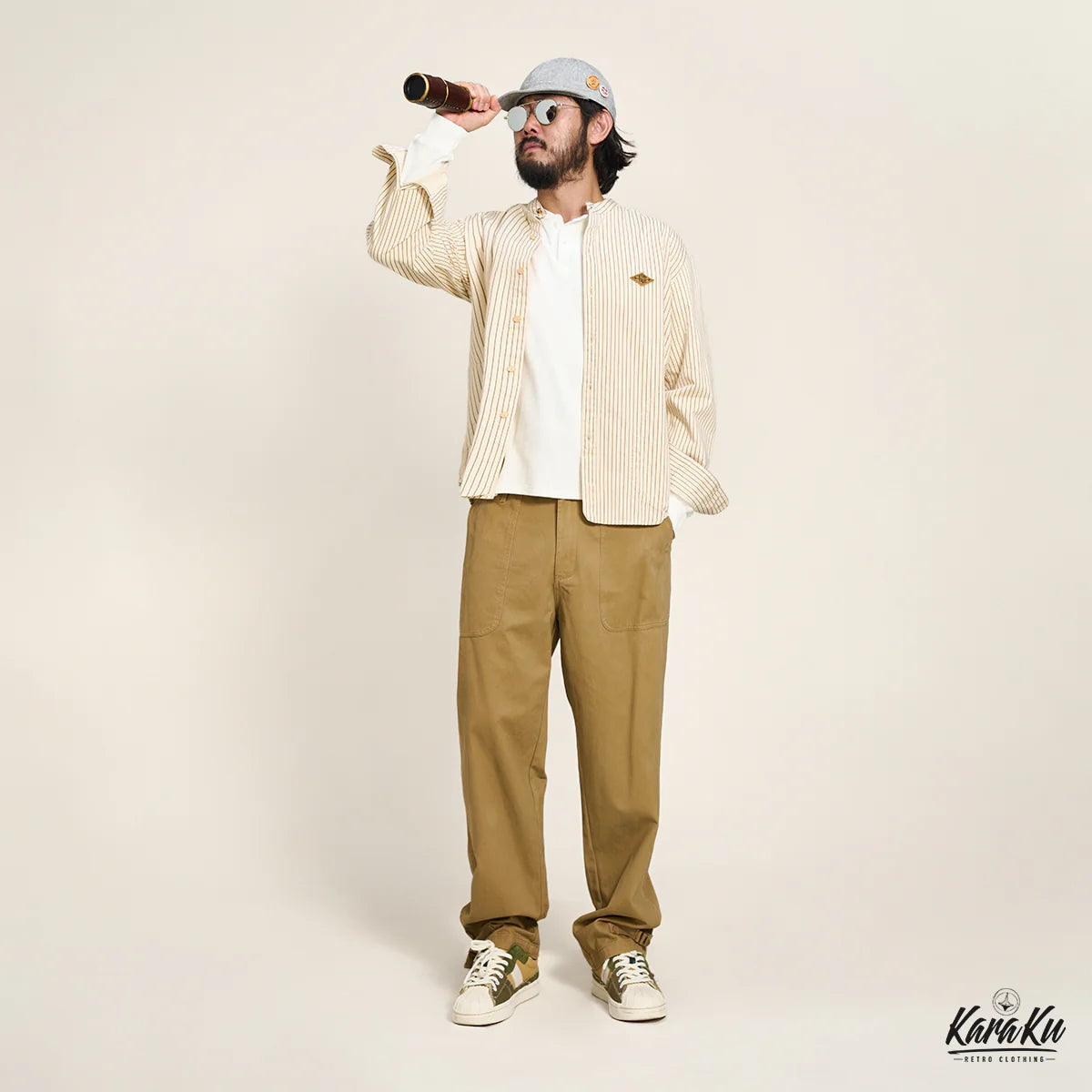 또한 전체가 스트라이프 사양에 의해 구제 테이스트가 있는 OLD SCHOOL 느낌나면서 사이즈감은 다양한 룩에 대응할 수 있는 적당한 오버 실루엣 신선한 스타일을 표현할 수 있는 디자인.