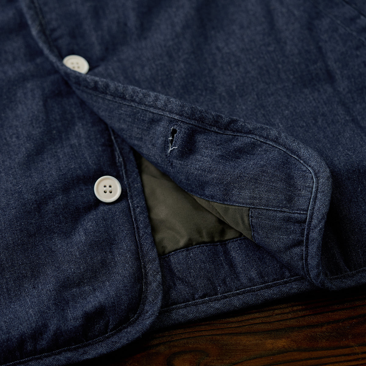 고품질 폴리에스터를 사용해 내마모성이 우수합니다. 솜이 들어간 퀼팅 안감으로 촉감이 부드럽고 구김이 잘 가지 않으며, 통기성과 보온성 또한 뛰어납니다. 캐주얼한 멋과 스타일을 살린 데님 소재를 사용했으며, 안면에는 패치 포켓 1개, 프론트에는 포켓 4개를 배치해 수납력도 확보했습니다. 소매에는 살짝 여유 있는 밴드를 적용해 입고 벗기 편하고, 동시에 방한성도 더했습니다. 핏은 현대적인 루즈 실루엣으로, 안에 후드나 두꺼운 이너를 입어도 편하게 움직일 수 있습니다. 적당한 두께와 탄탄한 원단으로 균형 잡힌 입체감을 연출하며, 가을·겨울 시즌 활용도가 높은 아이템입니다.