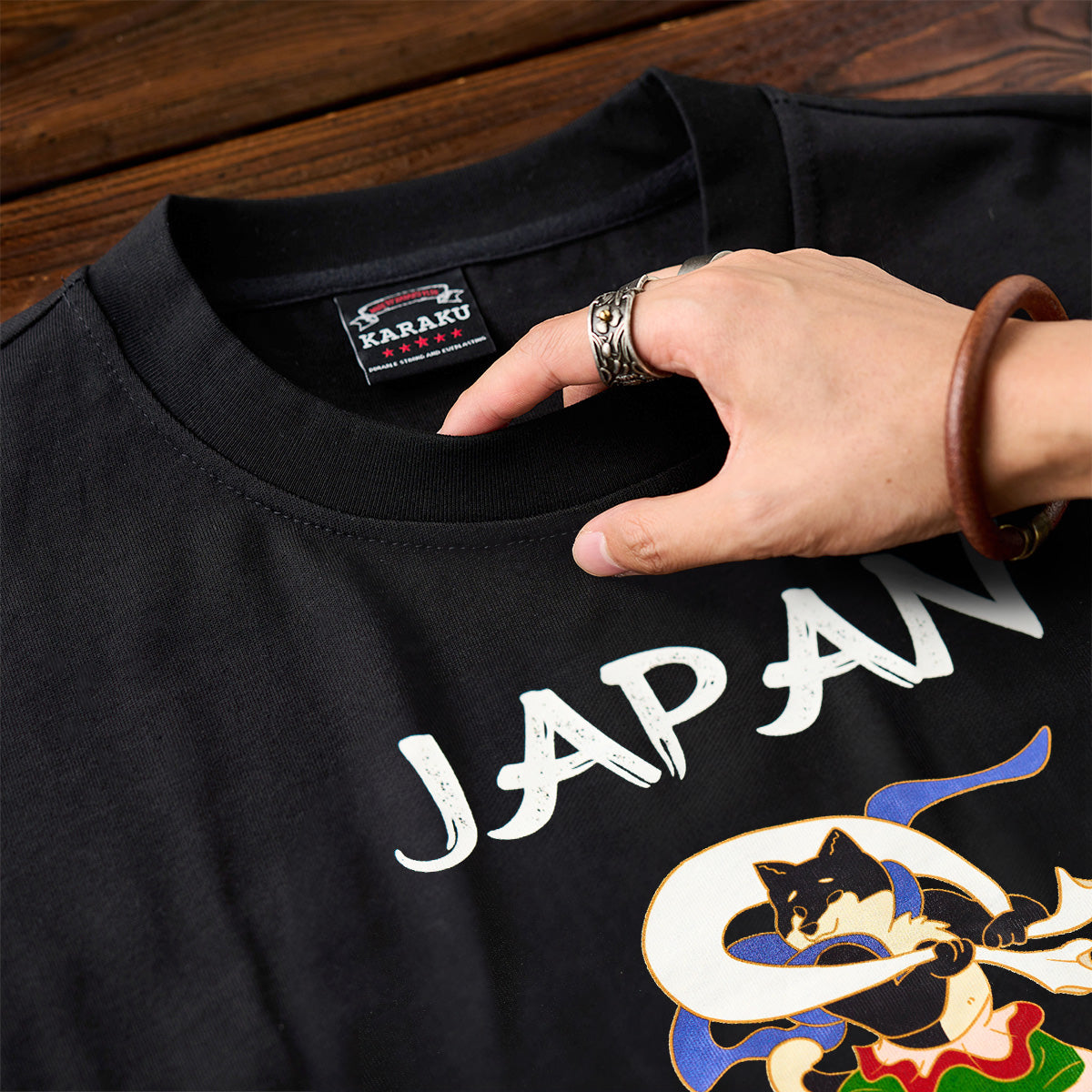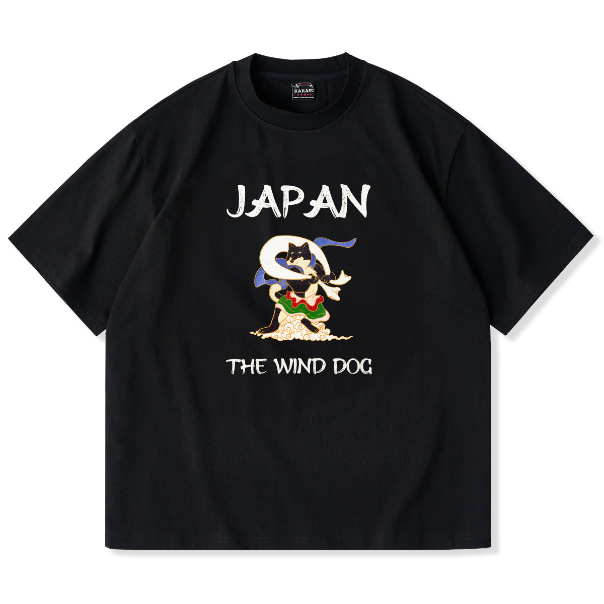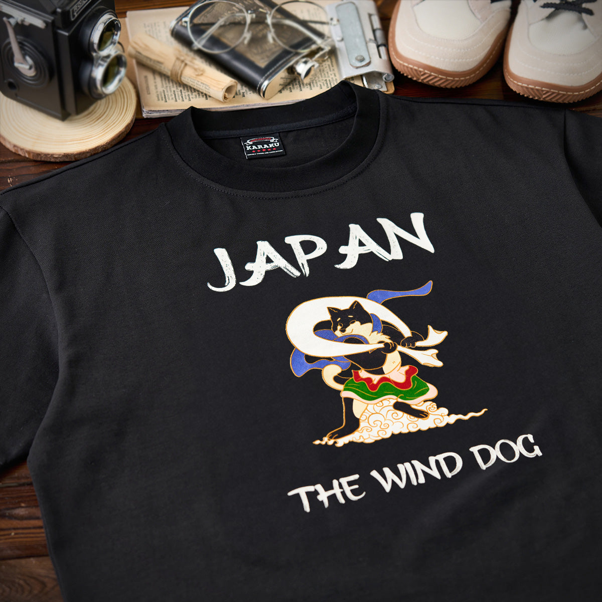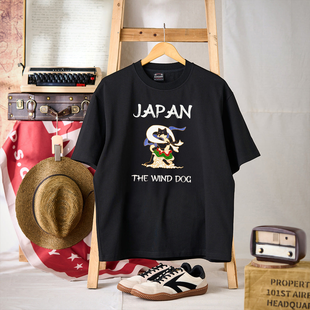 일본 우키요에(浮世絵) 명작 ‘풍신뇌신도(風神雷神図)’를 패러디한 위트 있는 디자인의 티셔츠입니다. 바람을 일으키는 검은 시바견 풍신을 모티프로, 유머와 예술 감성을 동시에 담아낸 KARAKU만의 유니크한 아이템입니다.