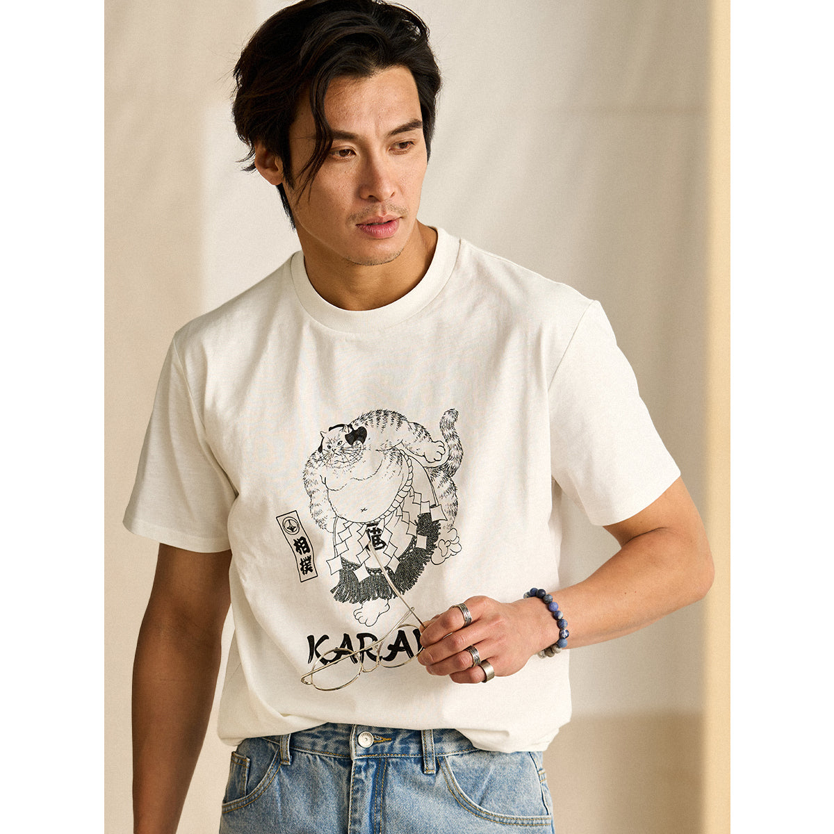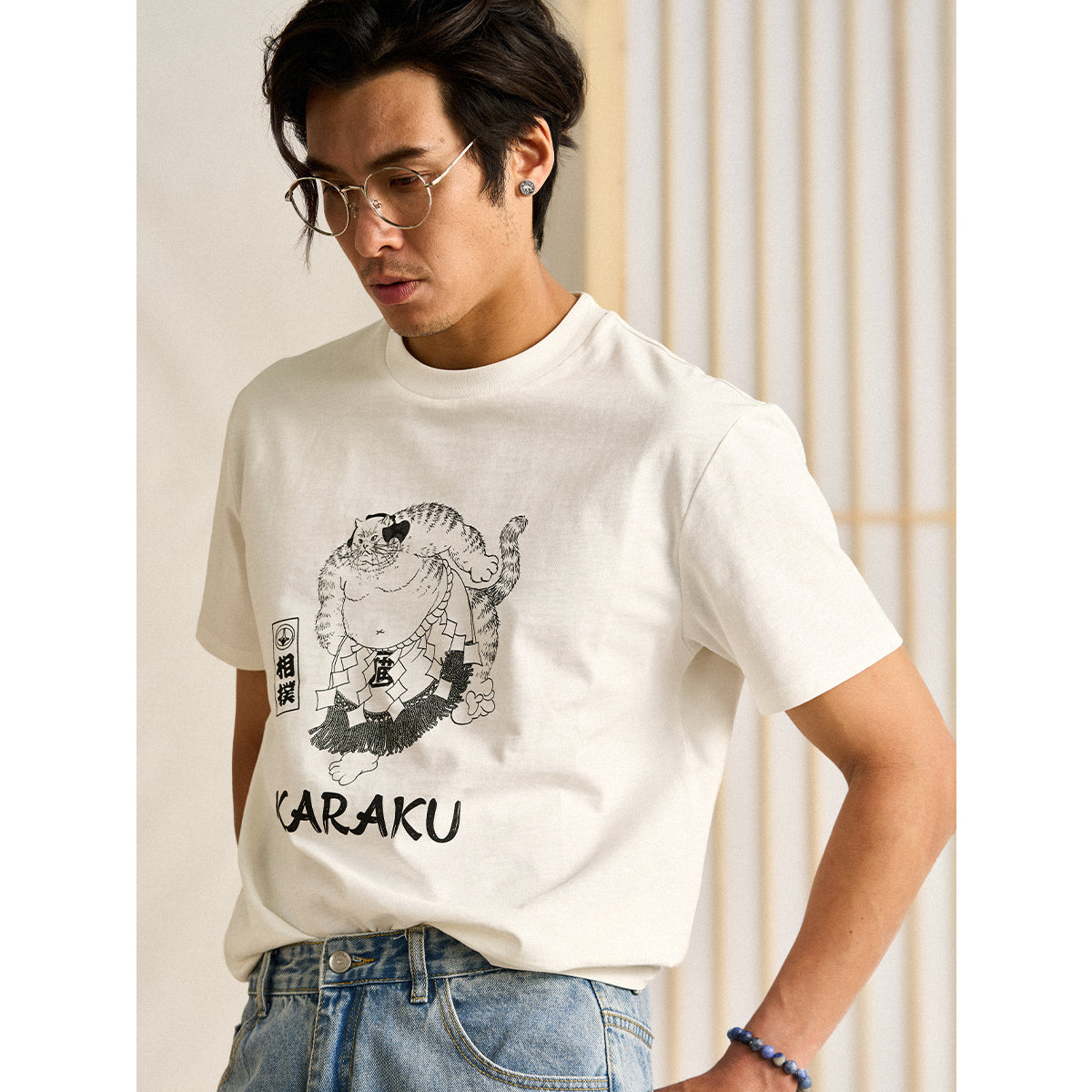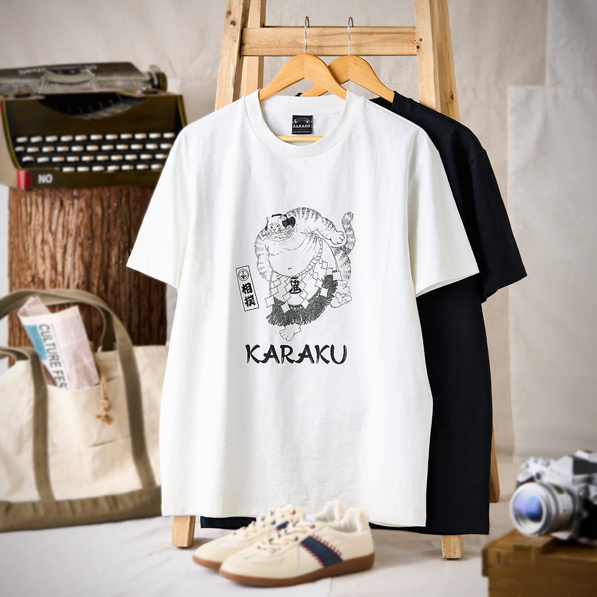 KARAKU와 일본 일러스트레이터 '365CAT.ART'가 함께 만든 고양이 캐릭터 티셔츠. 전통 문화와 현대 패션을 감각적으로 결합해, 고양이에 대한 애정을 담은 감각적인 디자인을 선보입니다.
