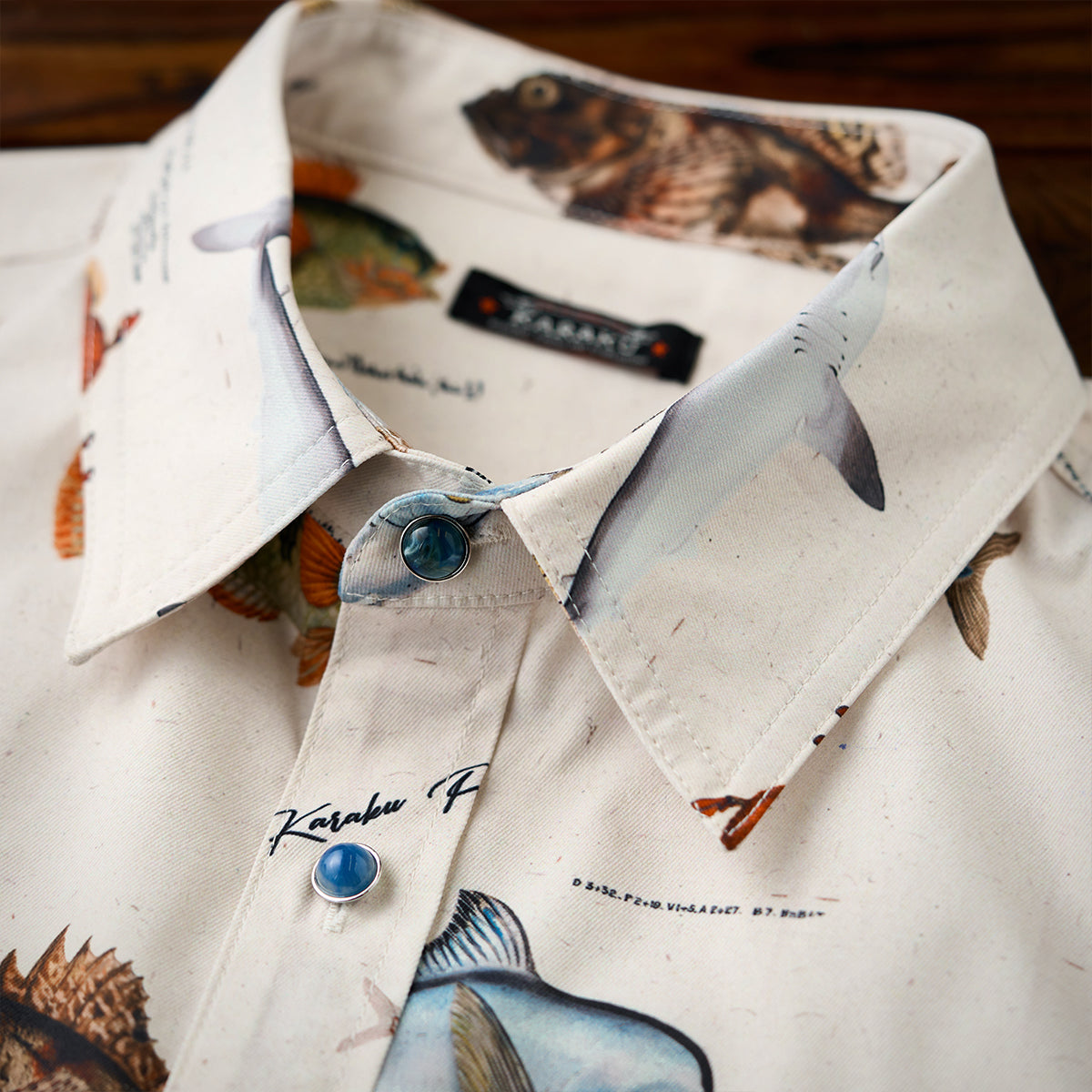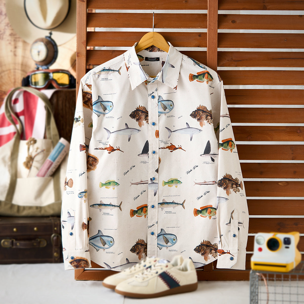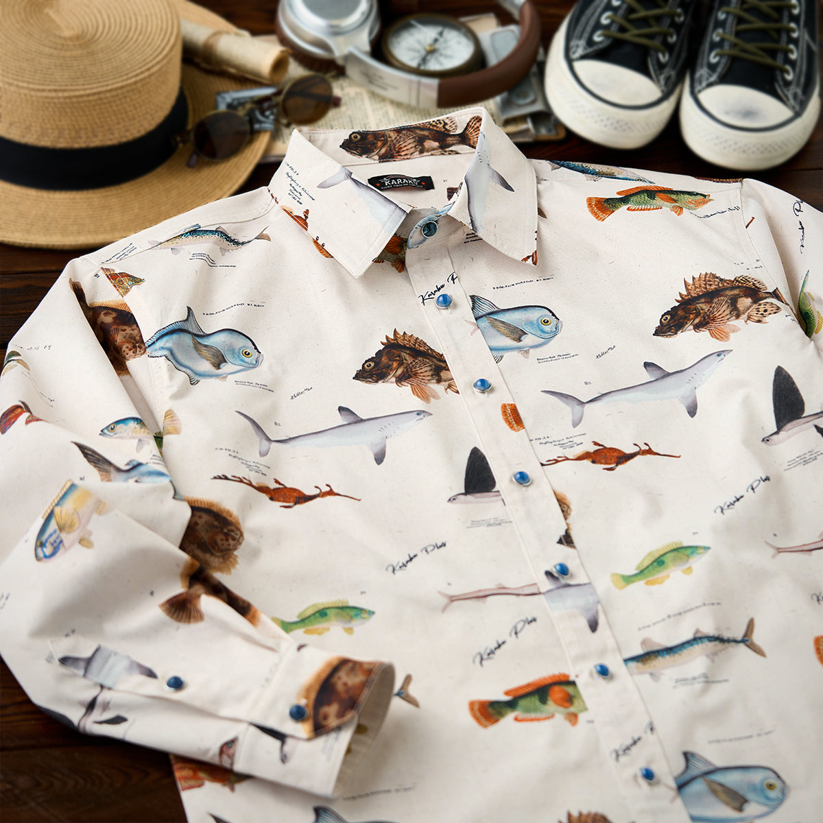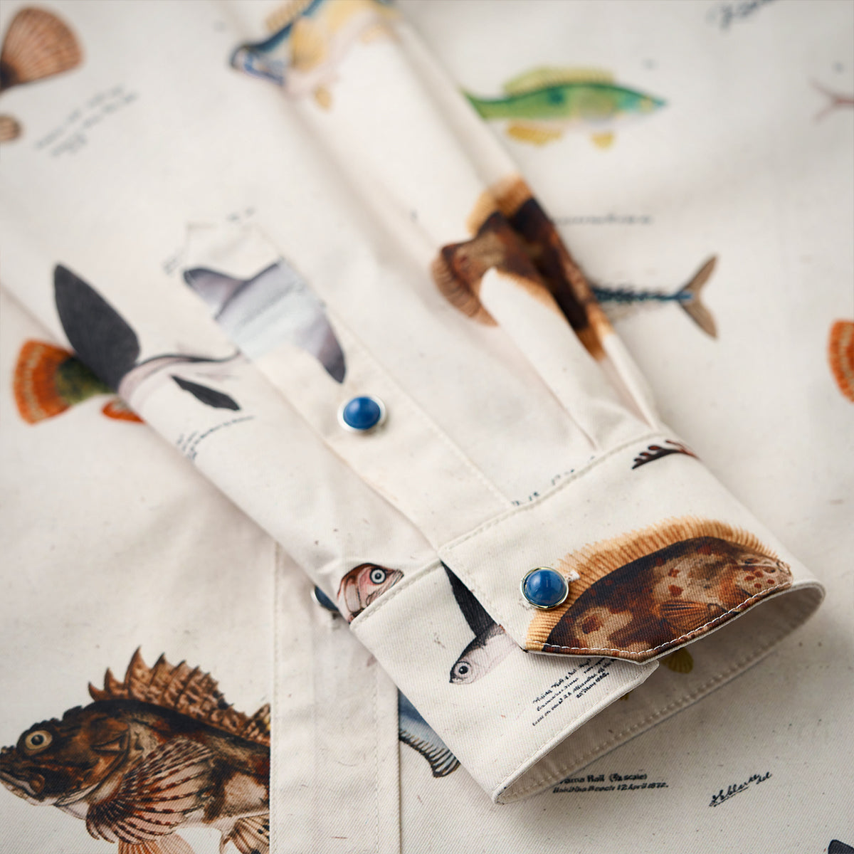 「생물도감·심해어」패턴 오더메이드 버튼 긴팔 셔츠