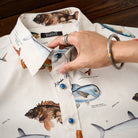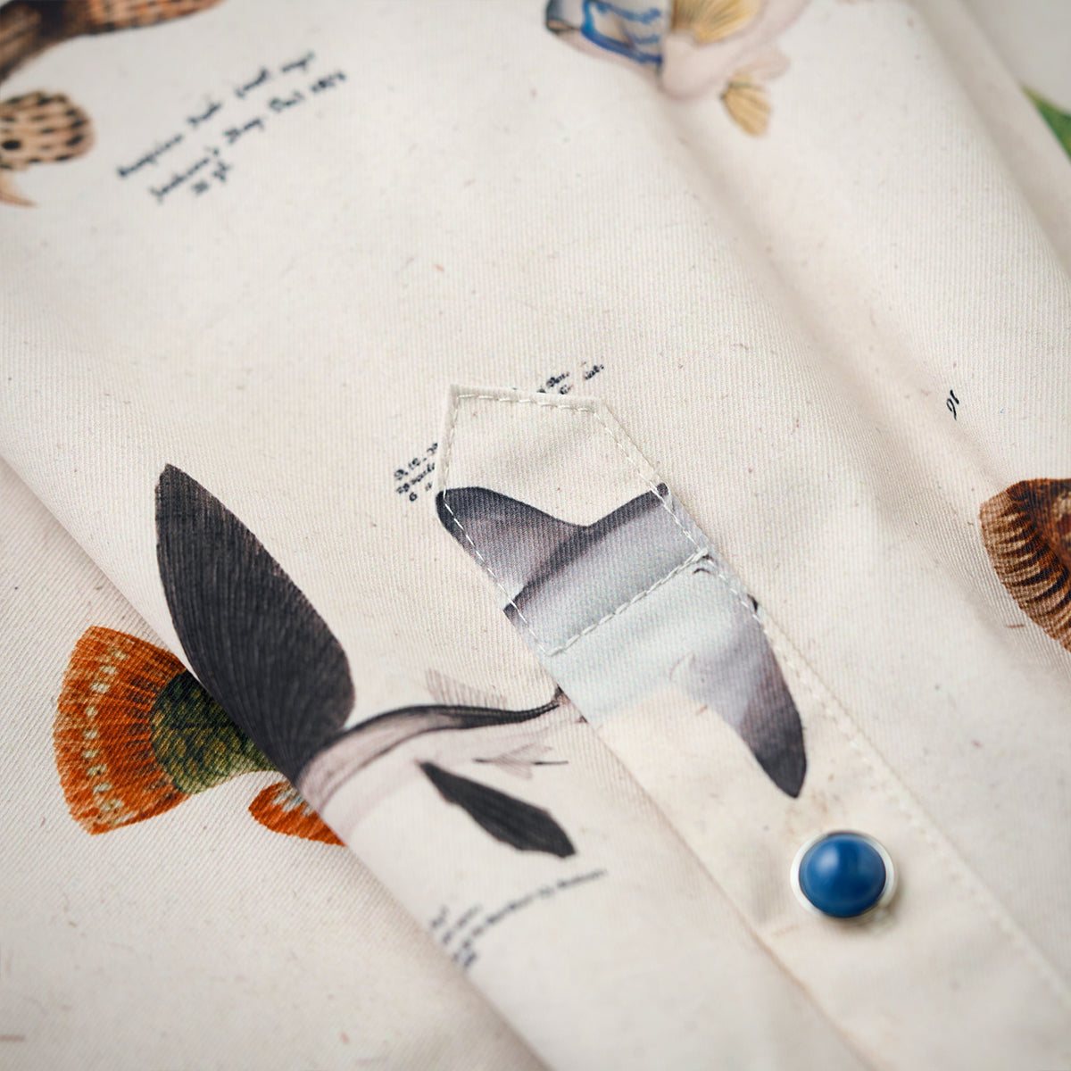 화려한 전체 패턴이지만 내용은 매우 학술적입니다. 자연사 박물관이나 도감을 좋아하는 층에 특히 어필하며, 치노 팬츠나 슬림핏 팬츠와 매치하면 거리에서도 멋스럽게 입을 수 있습니다. 스니커즈나 로퍼를 더하면 현대적인 느낌을 한층 강조할 수 있습니다.
