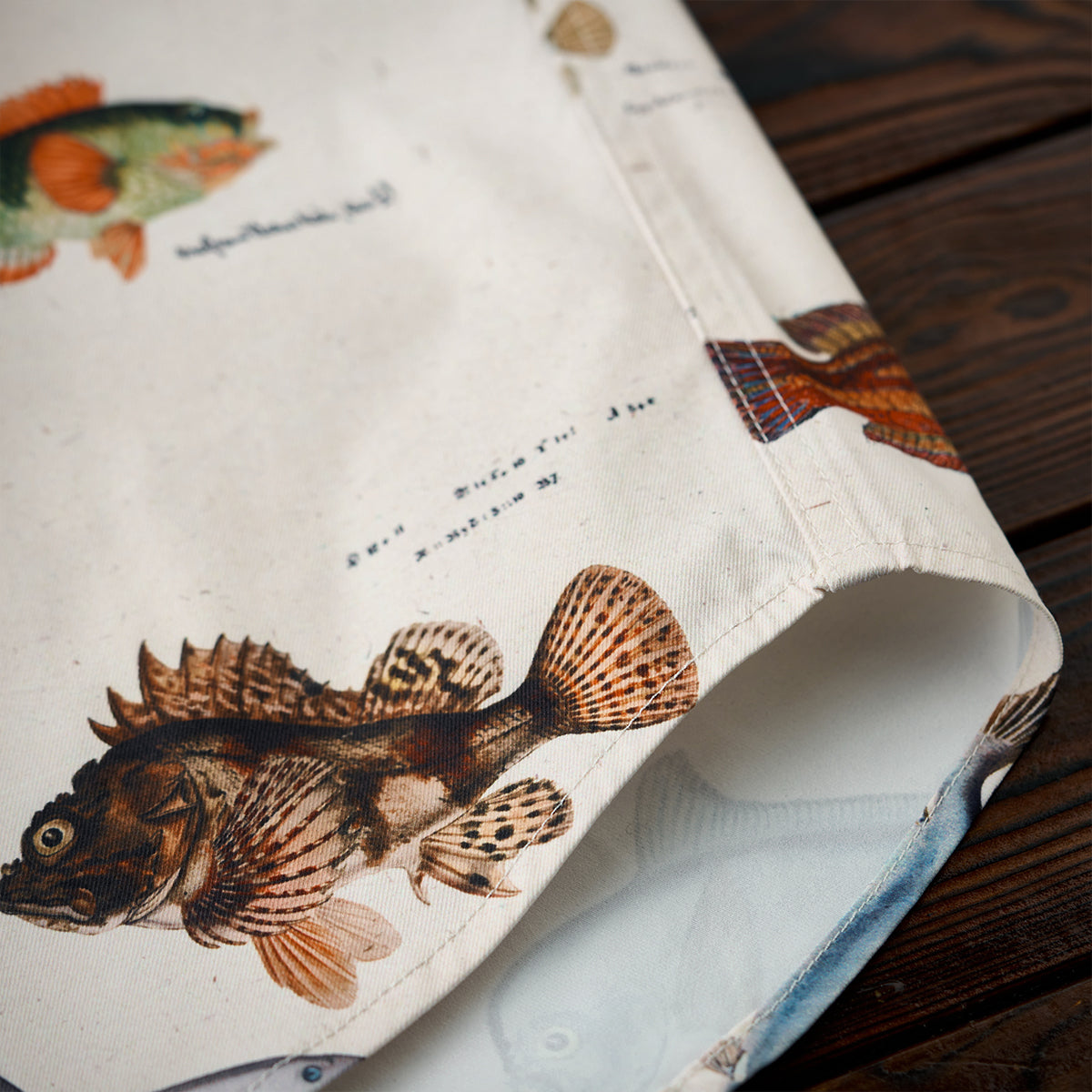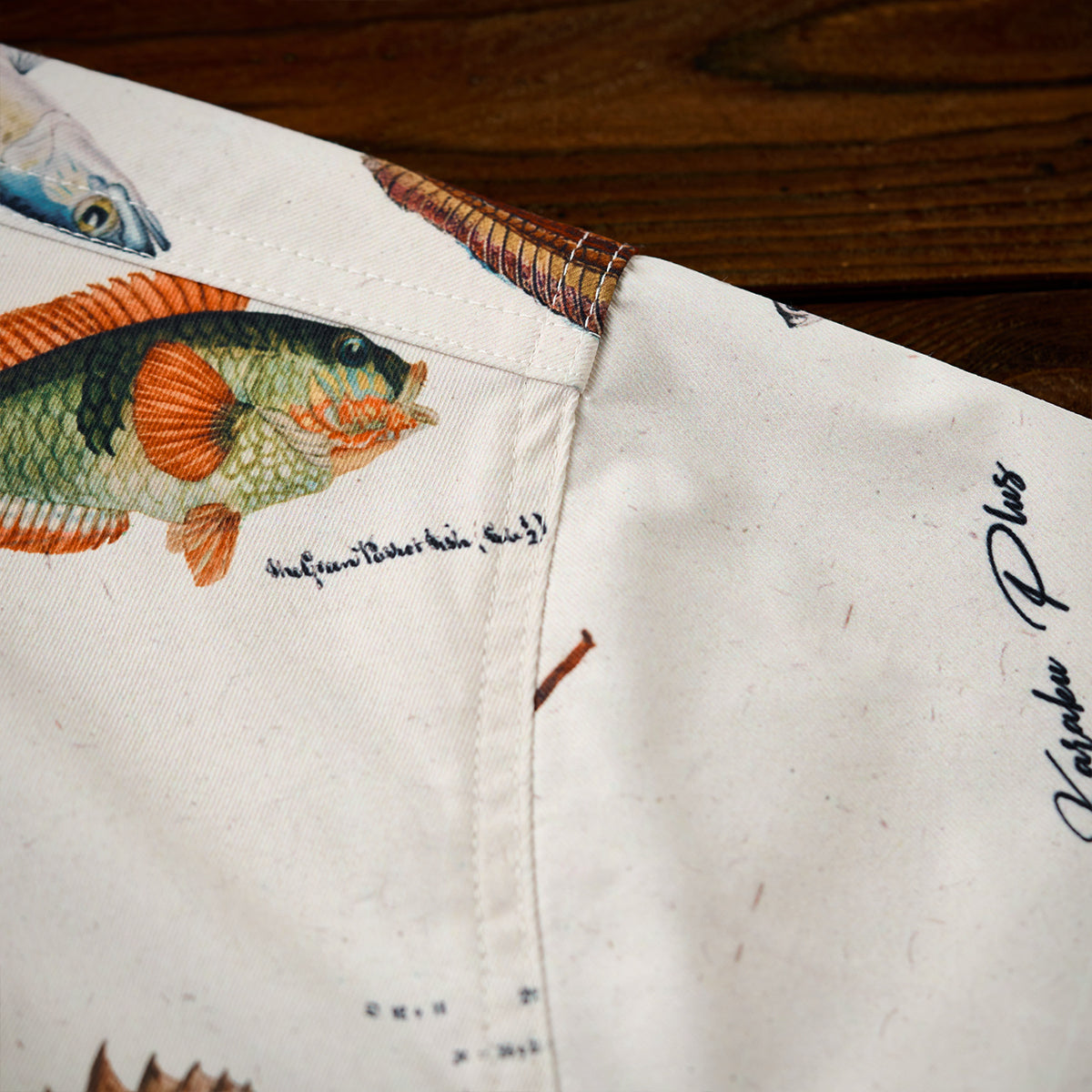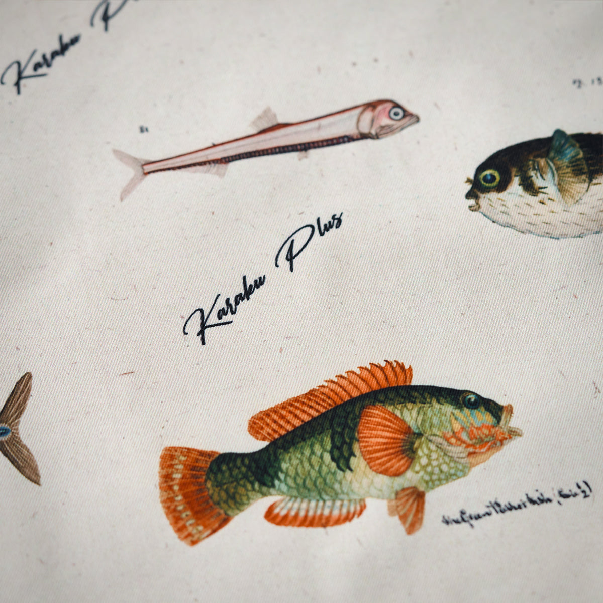 생물 도감을 떠올리게 하는 디자인으로, 물고기의 디테일을 사실적으로 표현했습니다. 아이보리 바탕에 자연스러운 색감이 조화롭게 배치되어 질리지 않는 매력을 선사합니다.