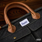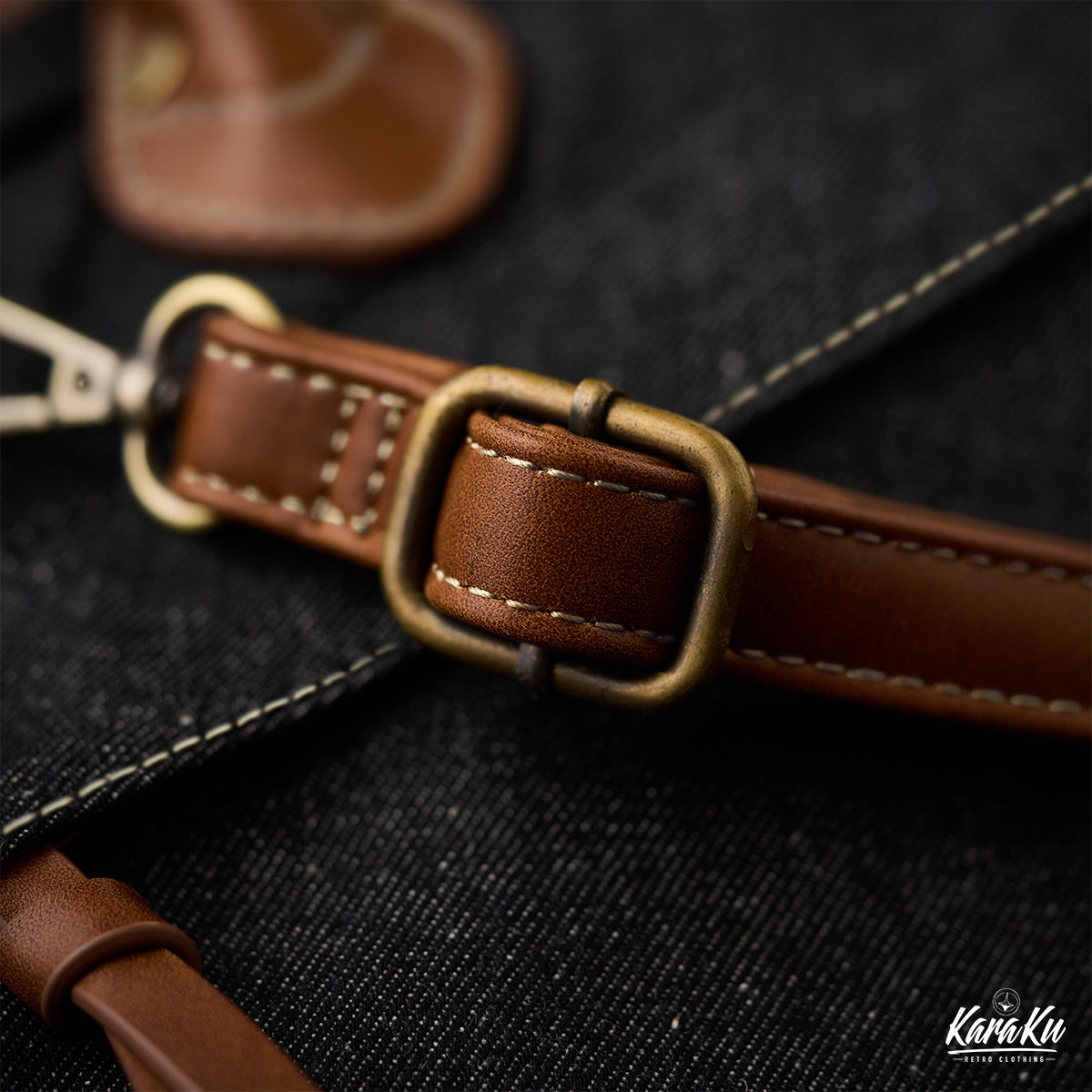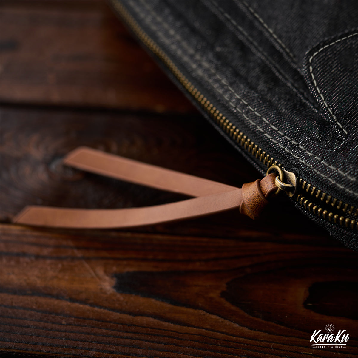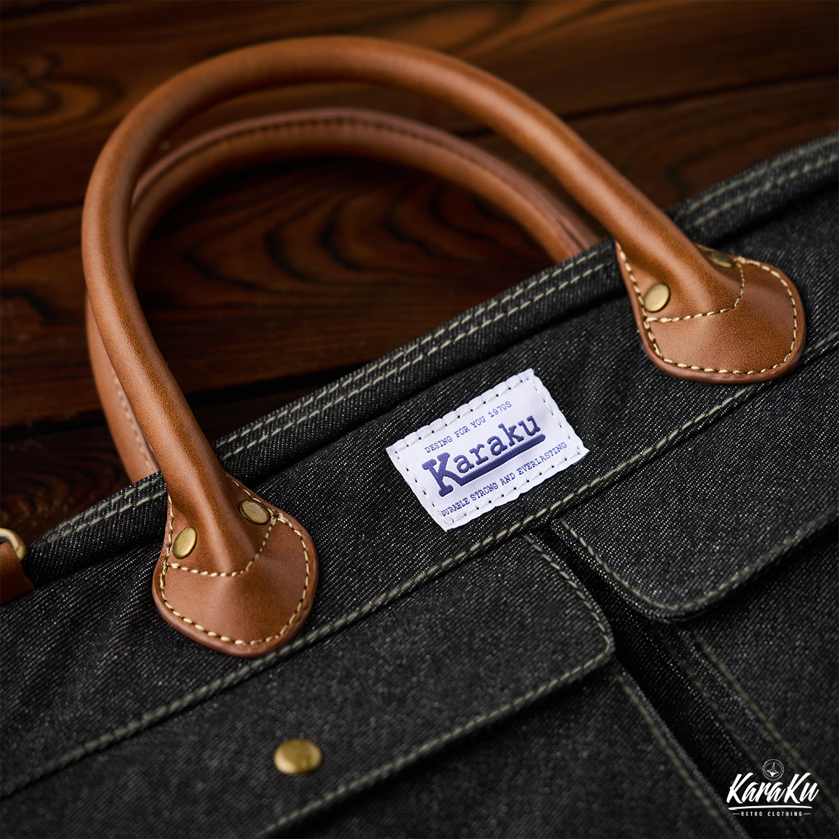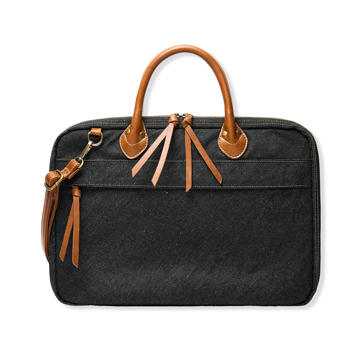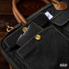 「Karaku」 가죽 트림 데님 서류가방(스트랩 제거 가능)