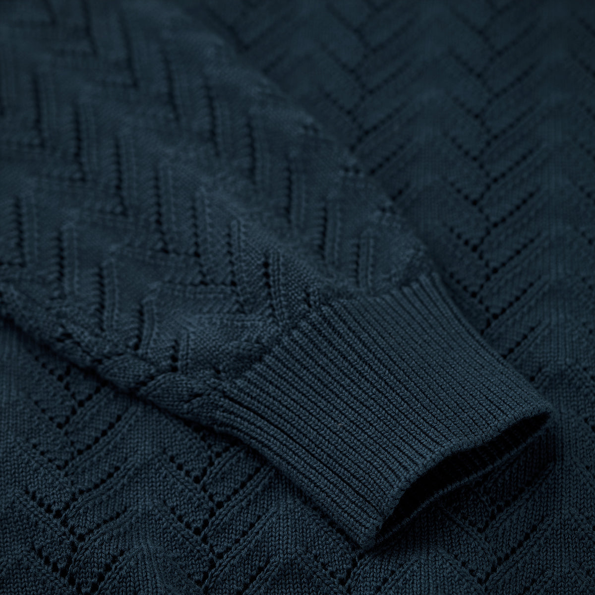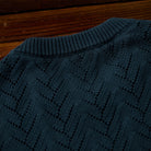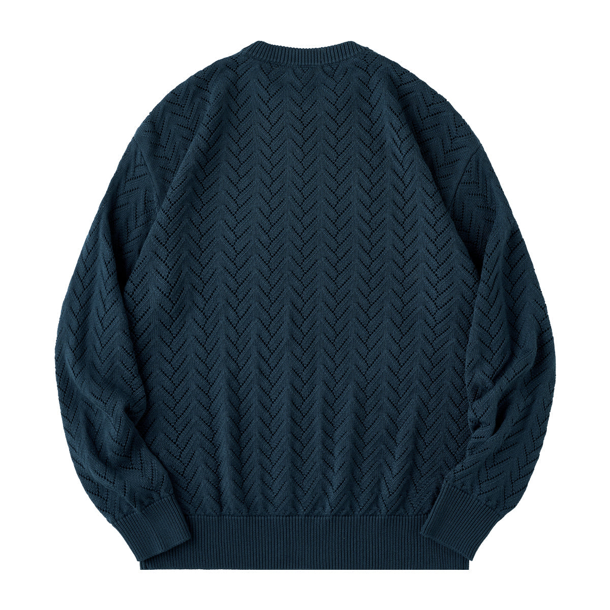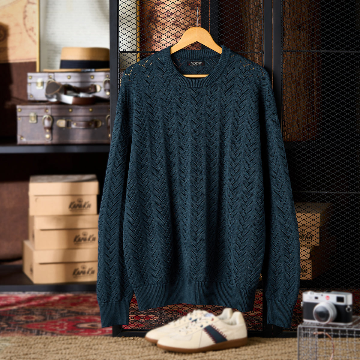 시스루 패턴과 드롭숄더로 세련되고 편안한 니트, 환절기 착용과 레이어드에 적합합니다.