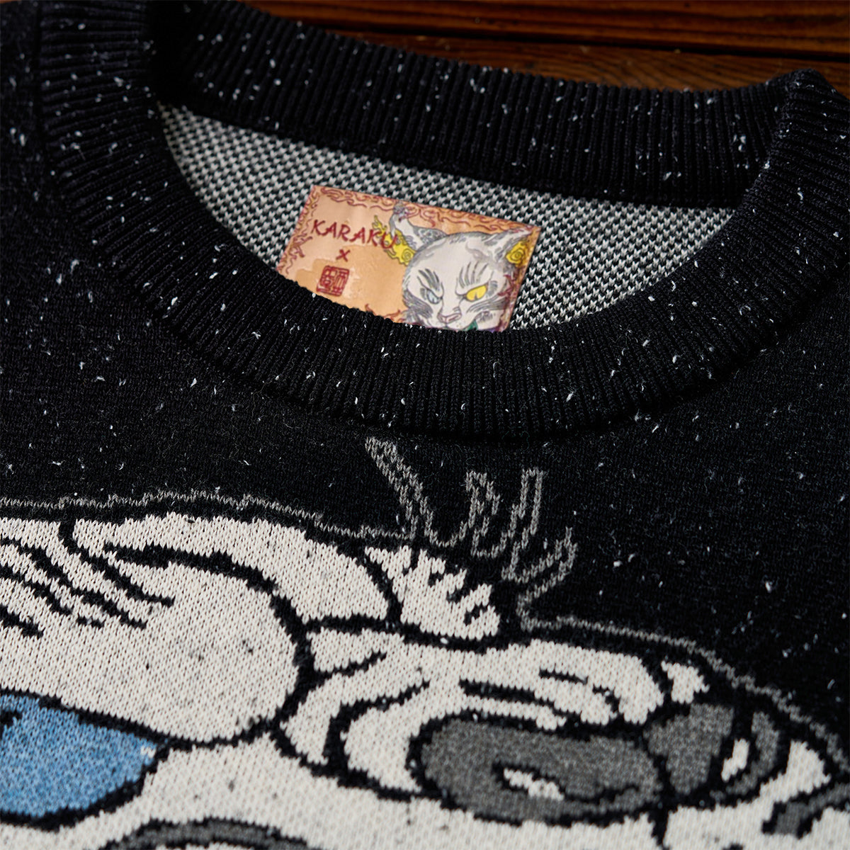 KARAKU×石黒亜矢子「백호」자카드 짜임 멜란지 니트 스웨터