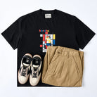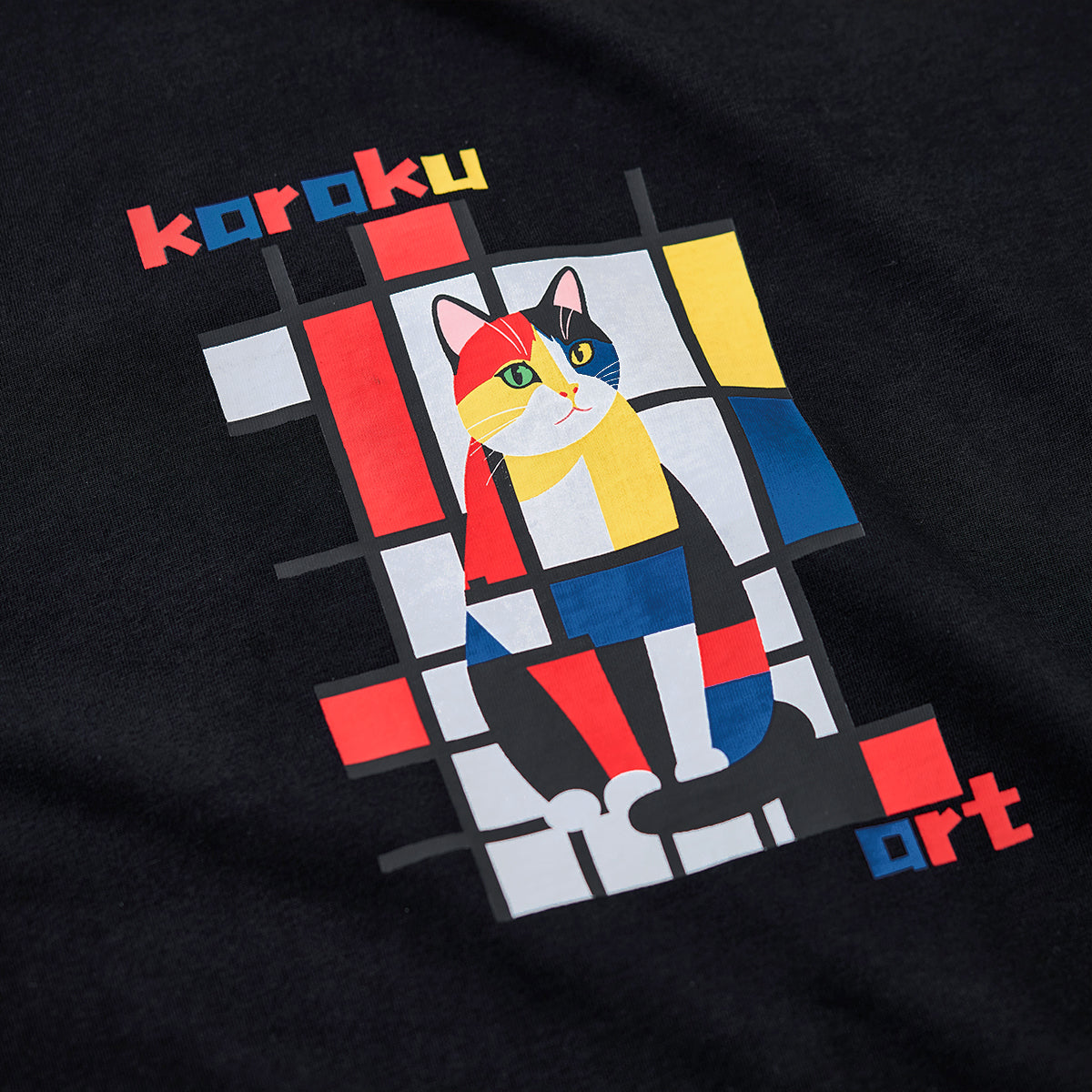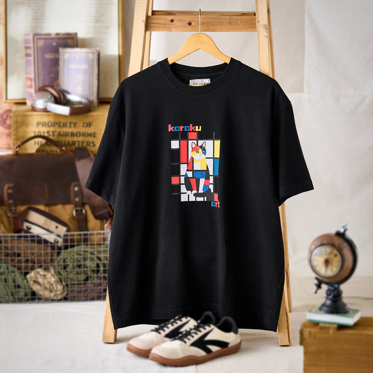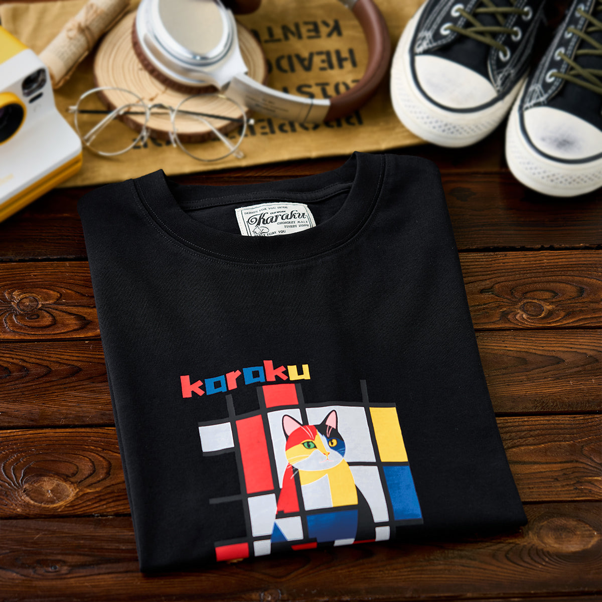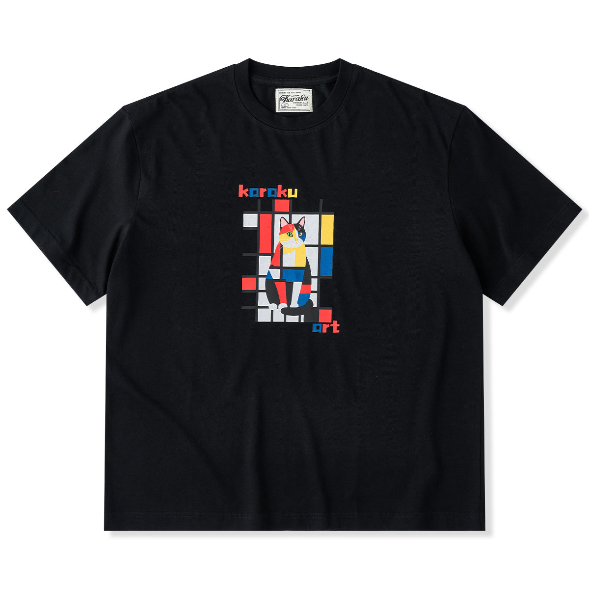 「KaraKu Art・몬드리안 고양이」패러디 프린트 코튼 티셔츠
