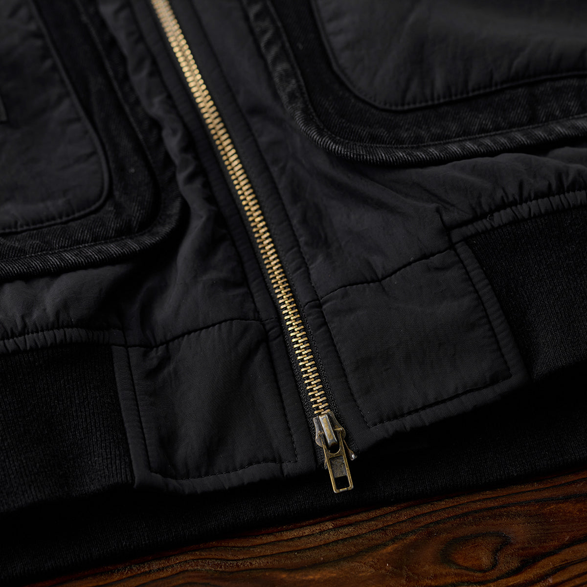 트위드×나일론 혼방 재구성 숄칼라 플라이트 자켓