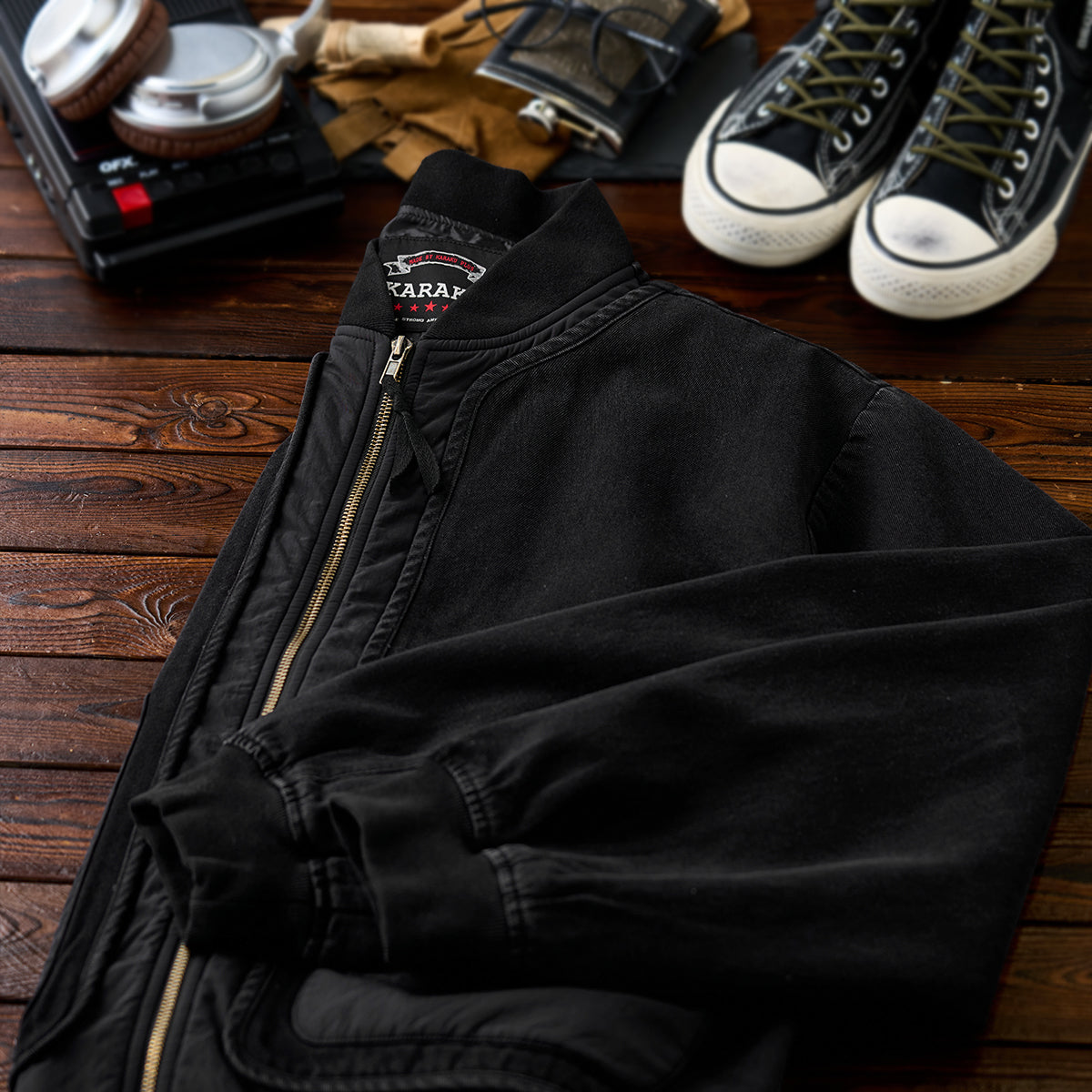 소재 배색「KARAKU」자수 디테일 트레이닝 자켓