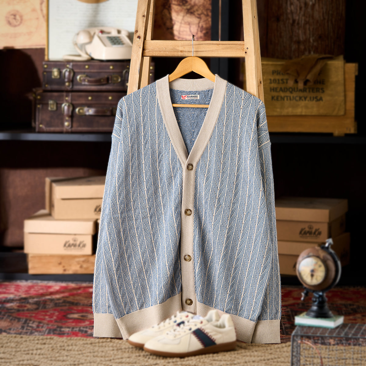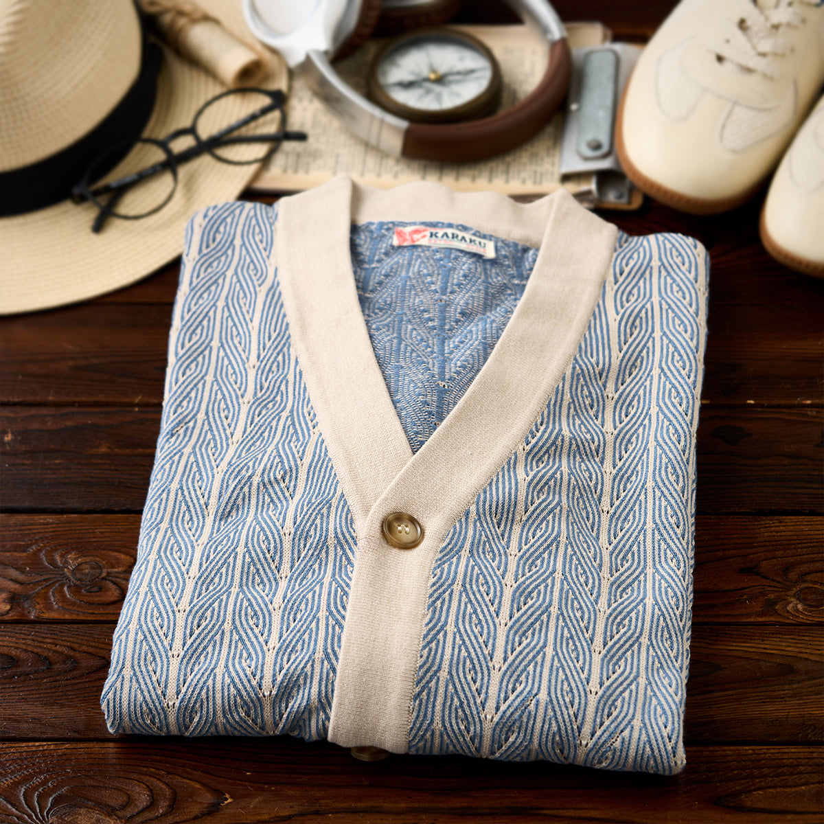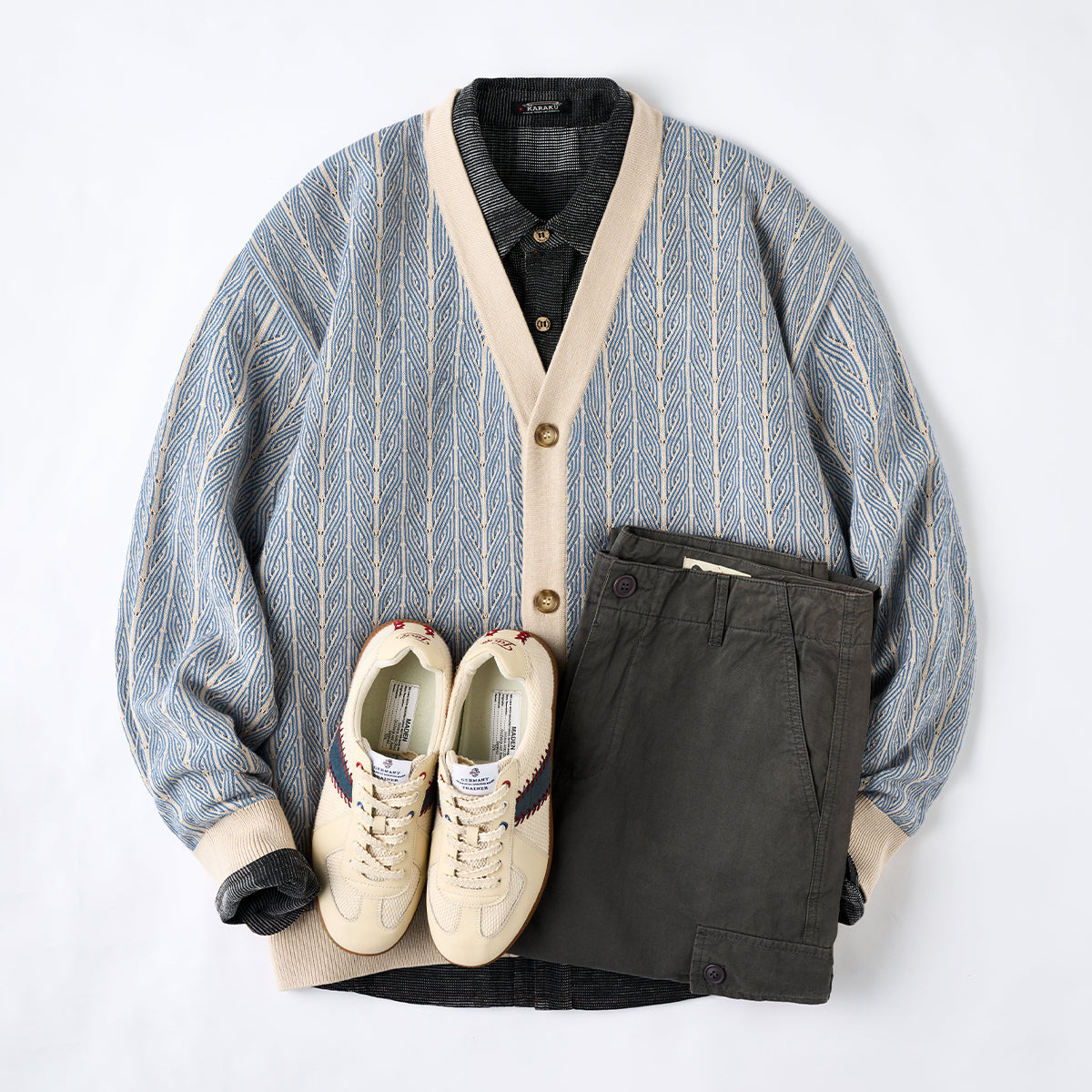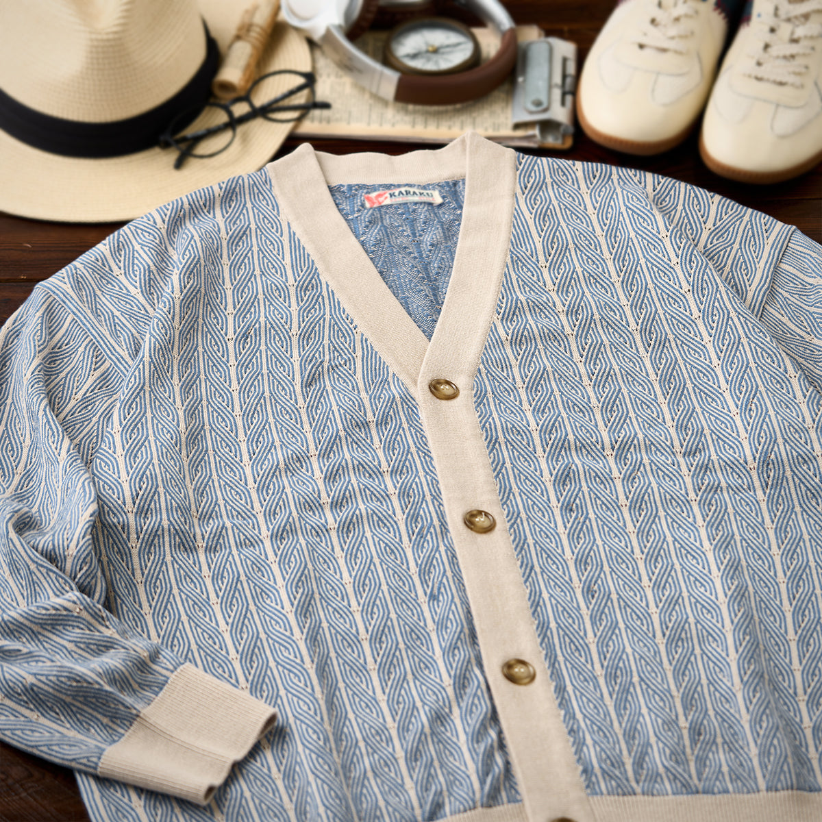 【사전예약】케이블 패턴 자카드 짜임 V넥 니트 가디건