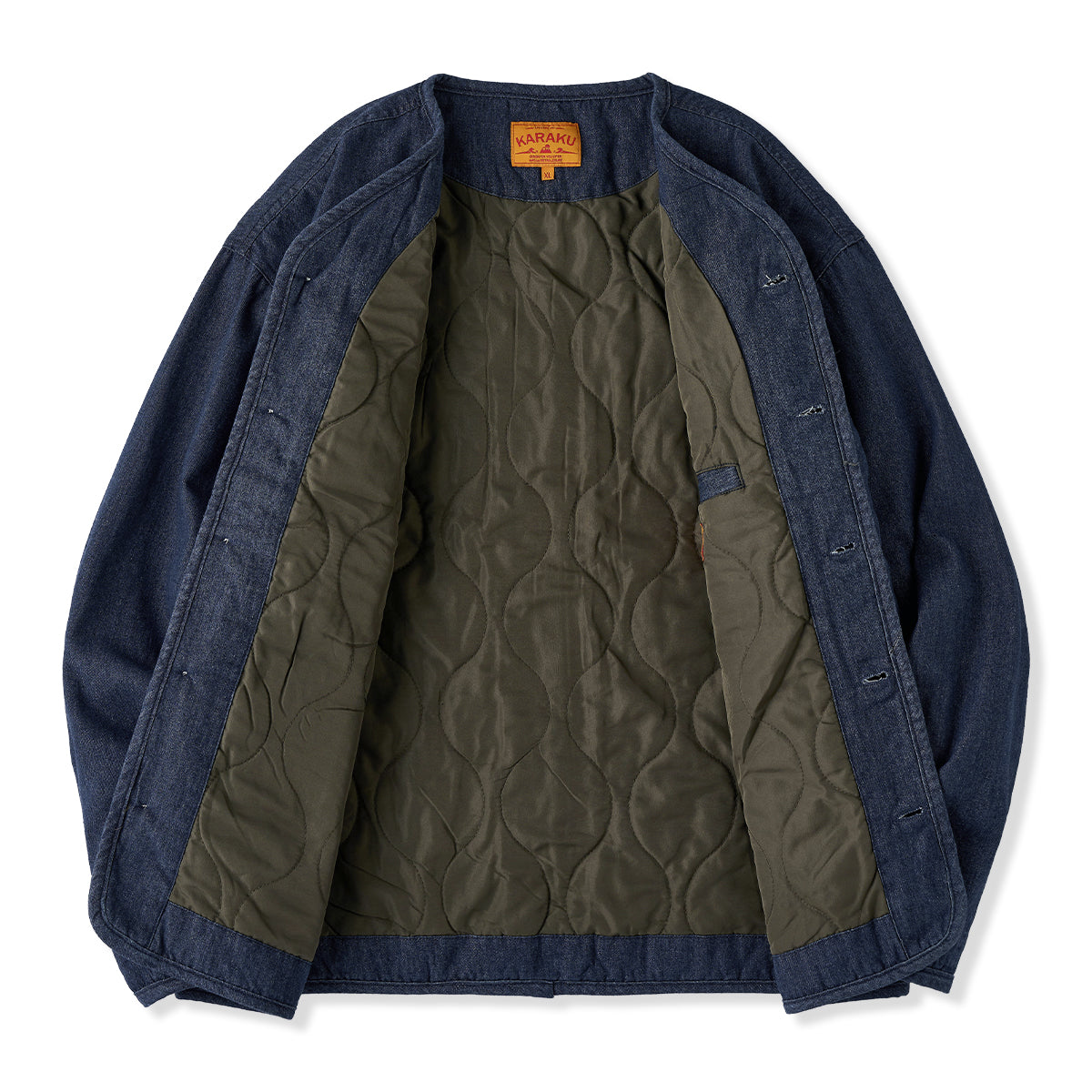 【사전예약】「KaraKu」자수 와펜 소매 지퍼 포켓 노카라 자켓
