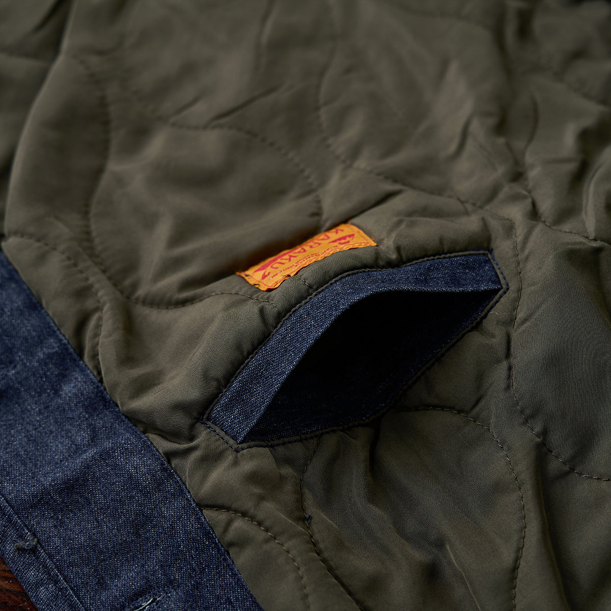 KARAKU×石黒亜矢子「백호」자수 배색 맞춤형 데님 자켓