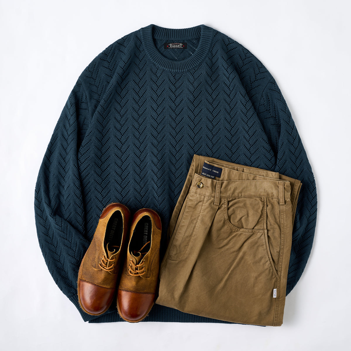 KARAKU×石黒亜矢子「백호」자카드 짜임 멜란지 니트 스웨터