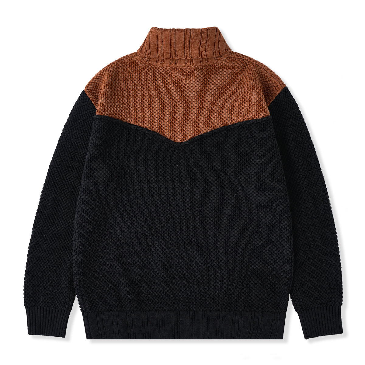 【사전예약】「STAY TRUE」자수 와펜 페이크 레이어드 배색 니트 스웨터