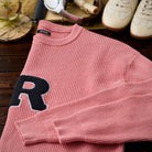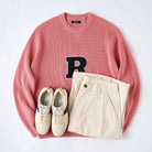 ‘R’ 로고 사가라 자수 배지와 배색 배지가 돋보이는 V 거셋 풀오버 니트 스웨터로, 데일리 룩과 레이어드 모두에 잘 어울리는 아이템입니다.