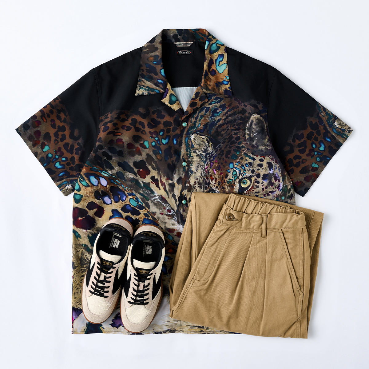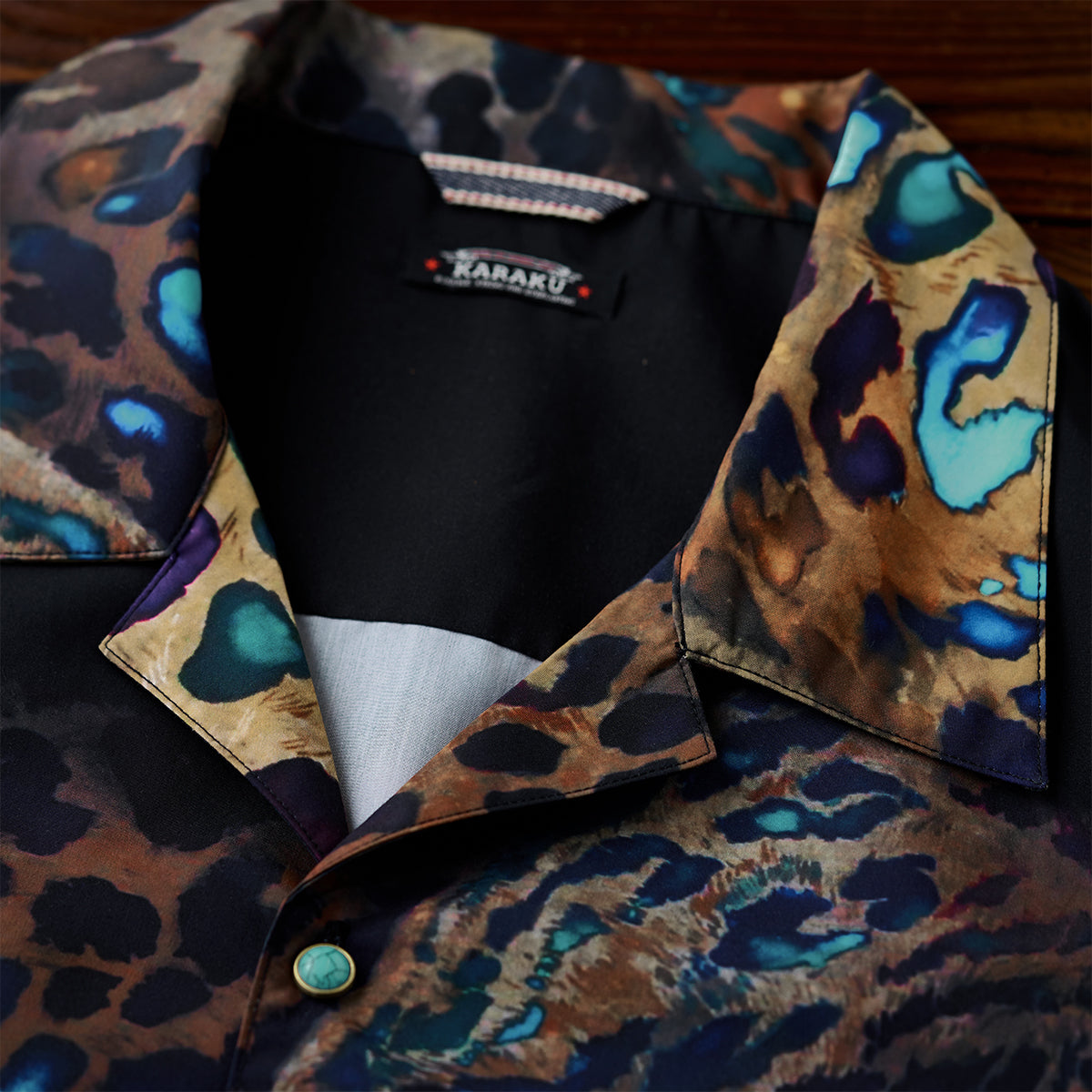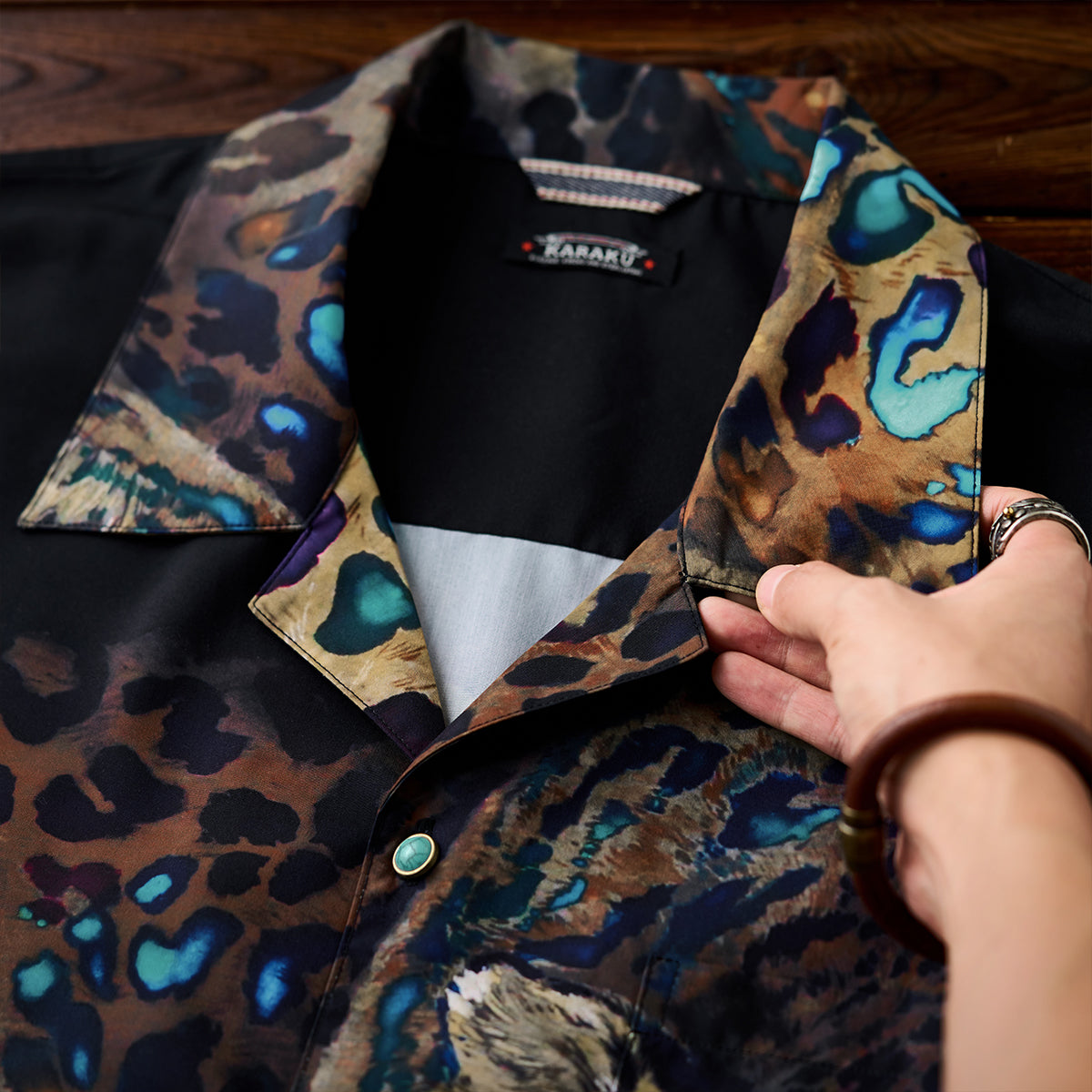 Karaku×川又聡「夢豹」터키석 단추 오픈칼라 셔츠