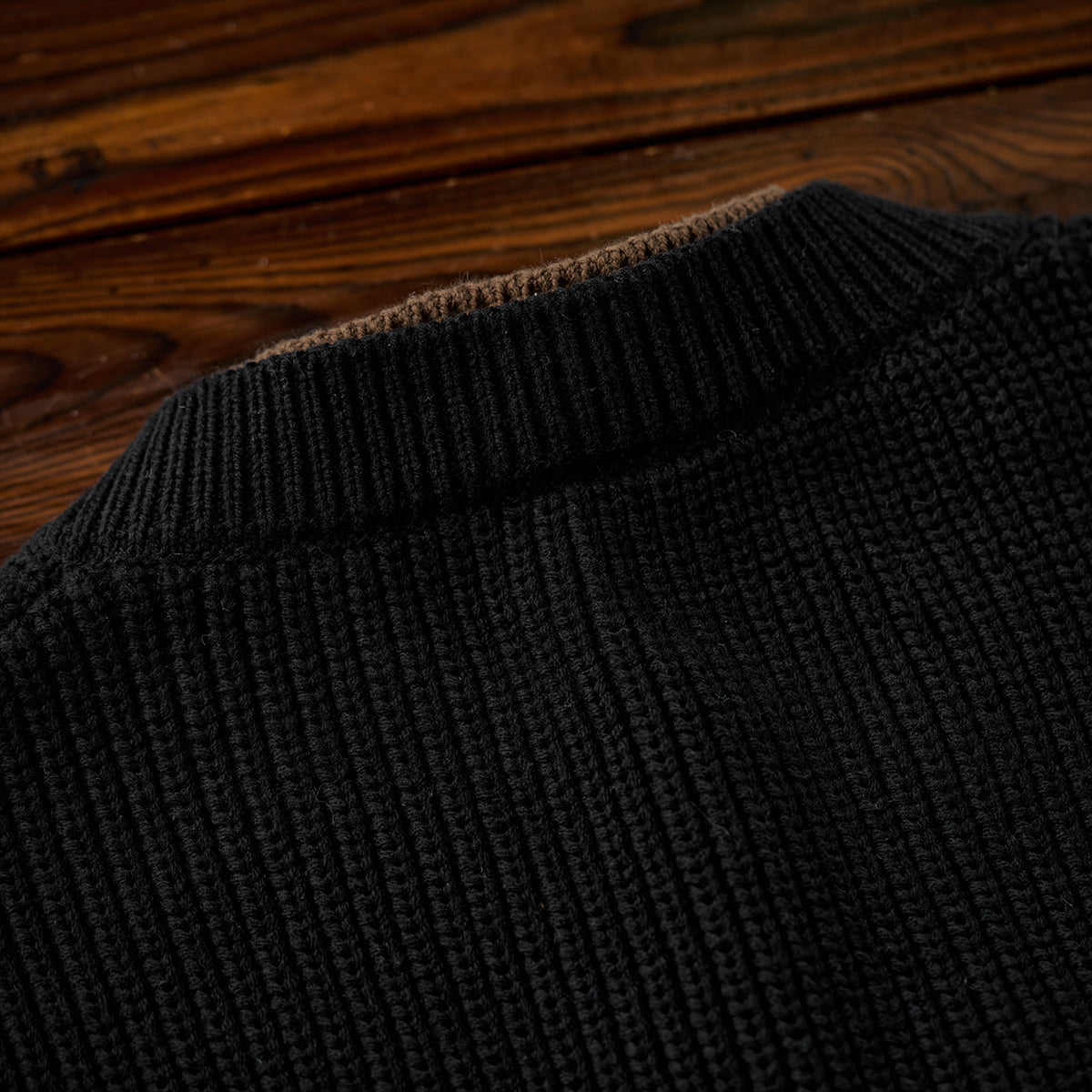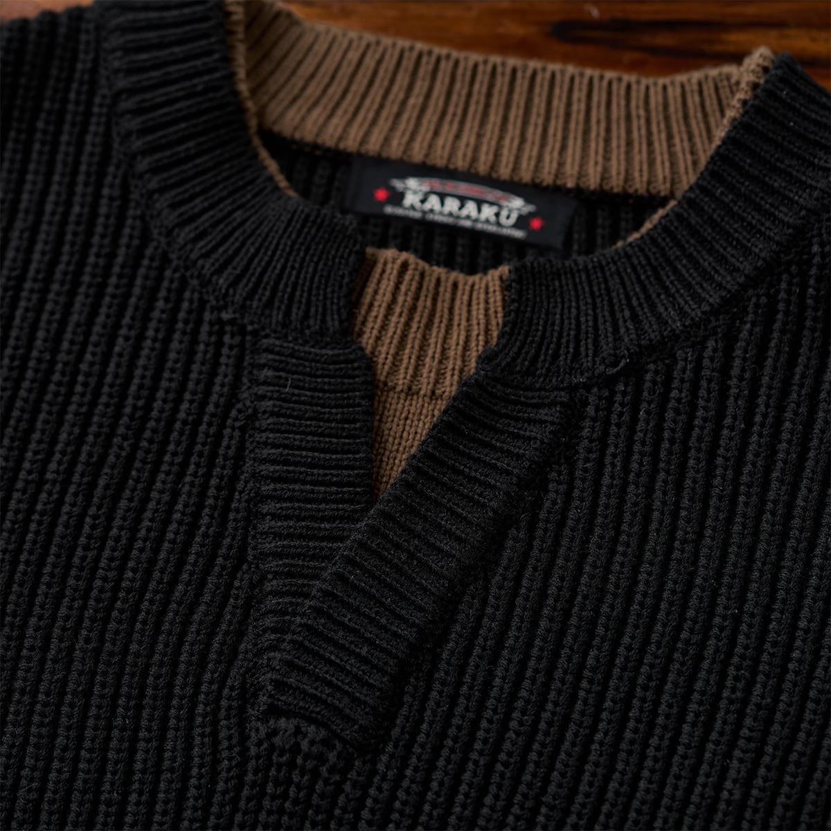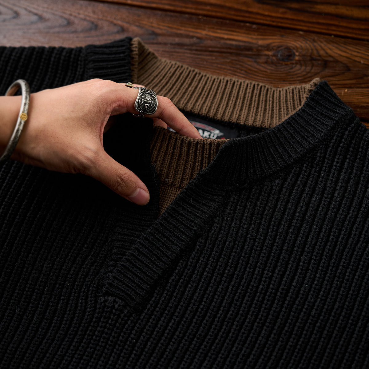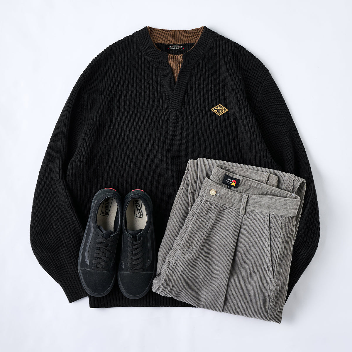 【사전예약】「STAY TRUE」자수 와펜 페이크 레이어드 배색 니트 스웨터
