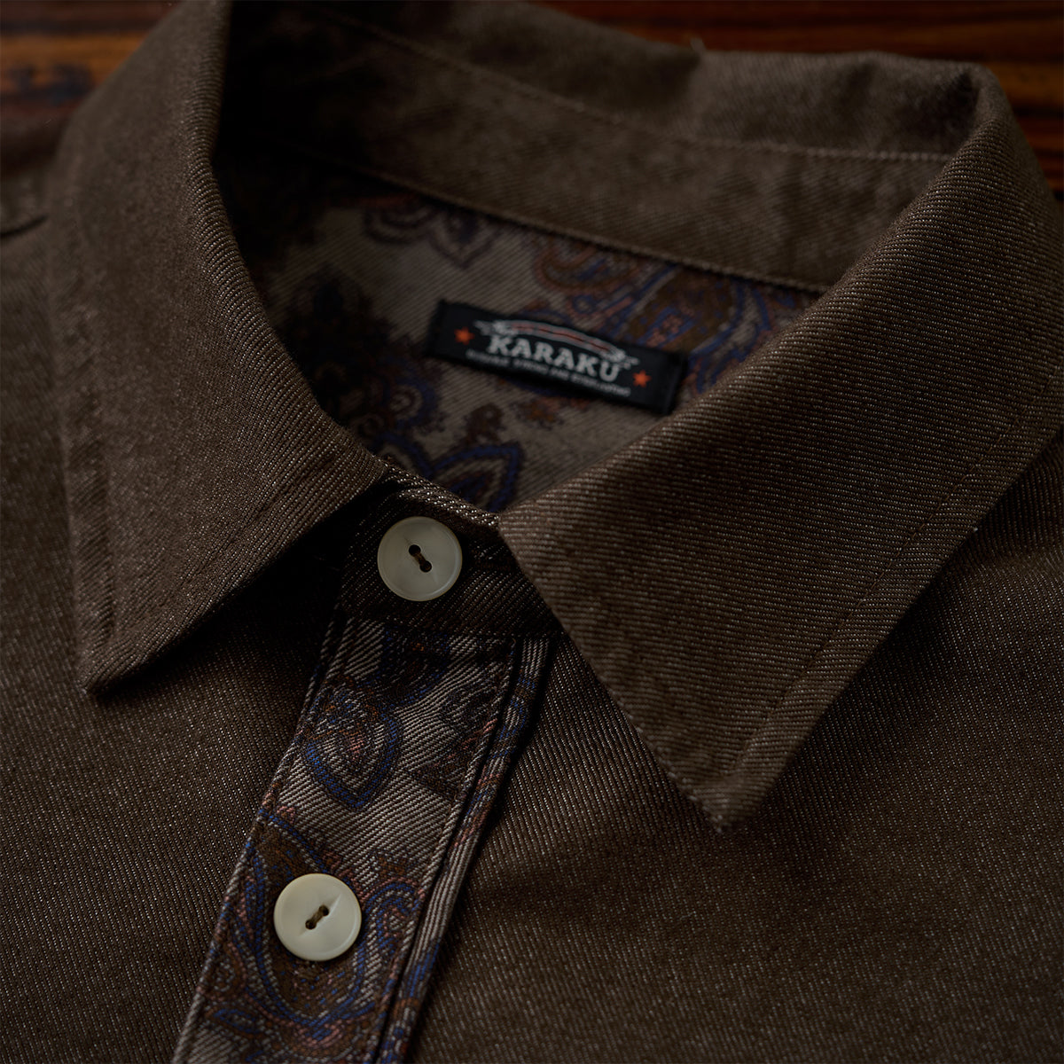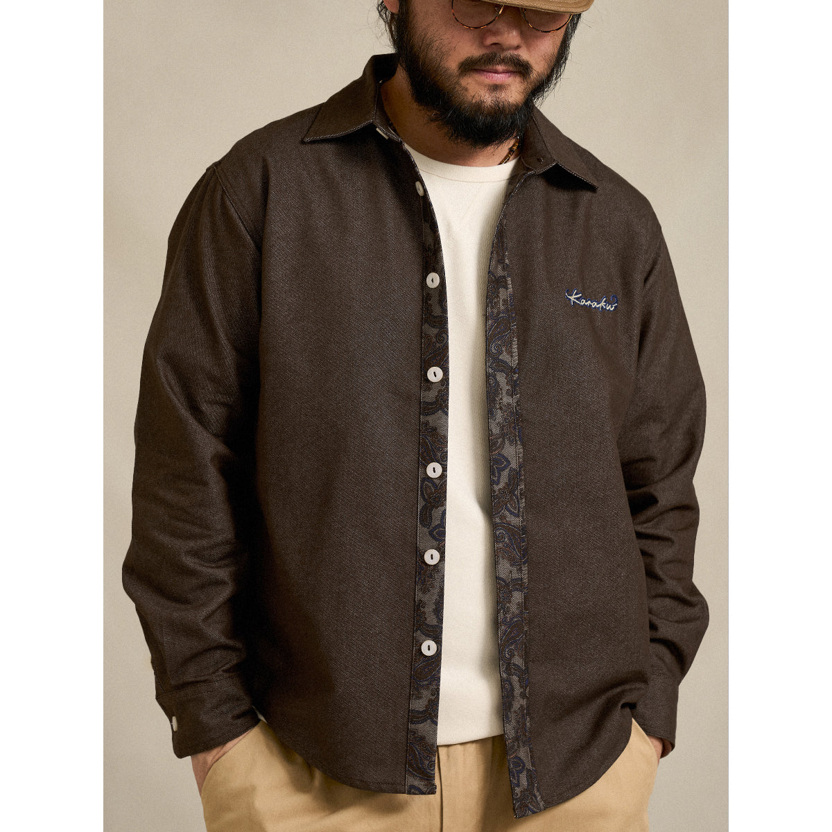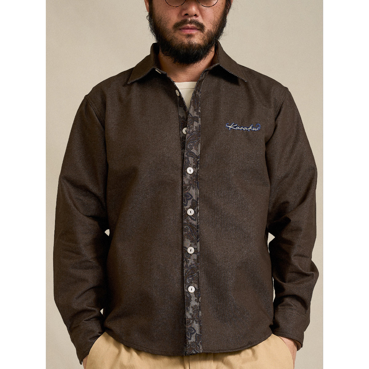 「Karaku」로고 자수 페이즐리 안감 데님 긴팔 셔츠