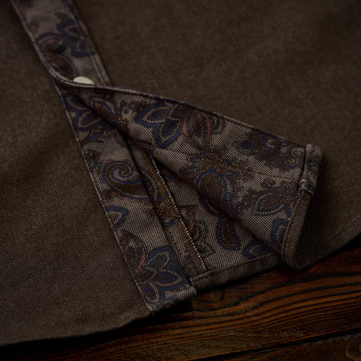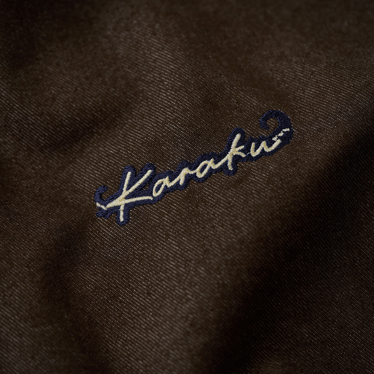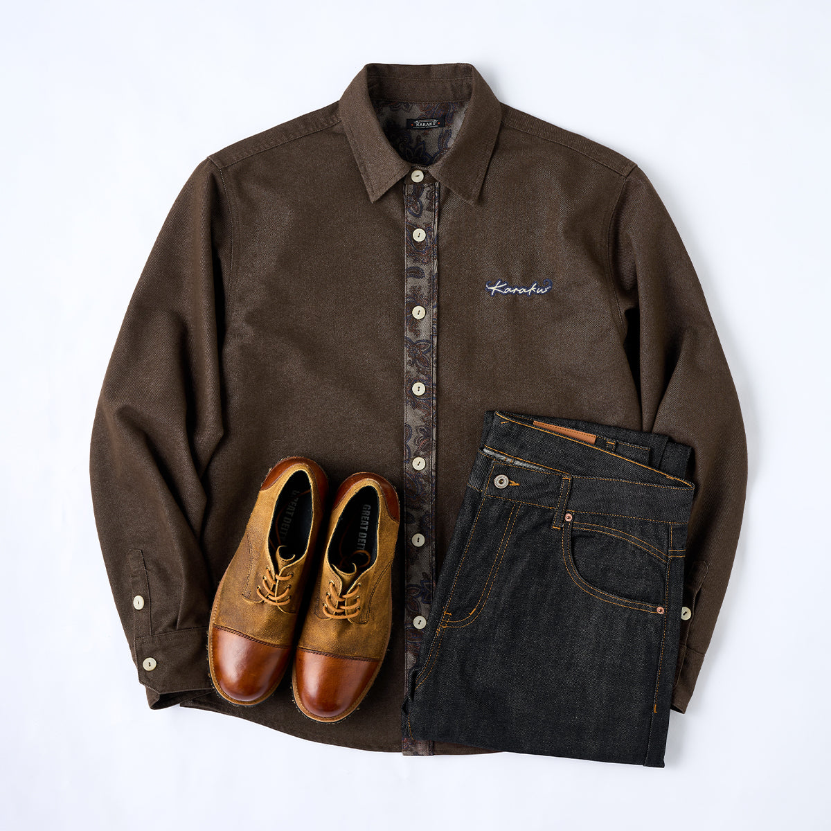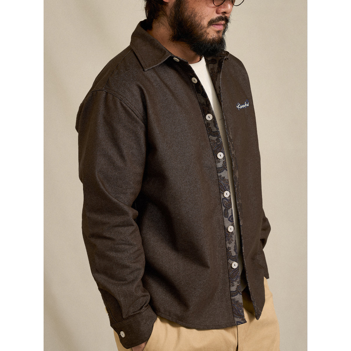 「Karaku」로고 자수 페이즐리 안감 데님 긴팔 셔츠