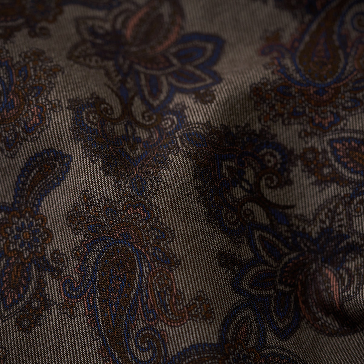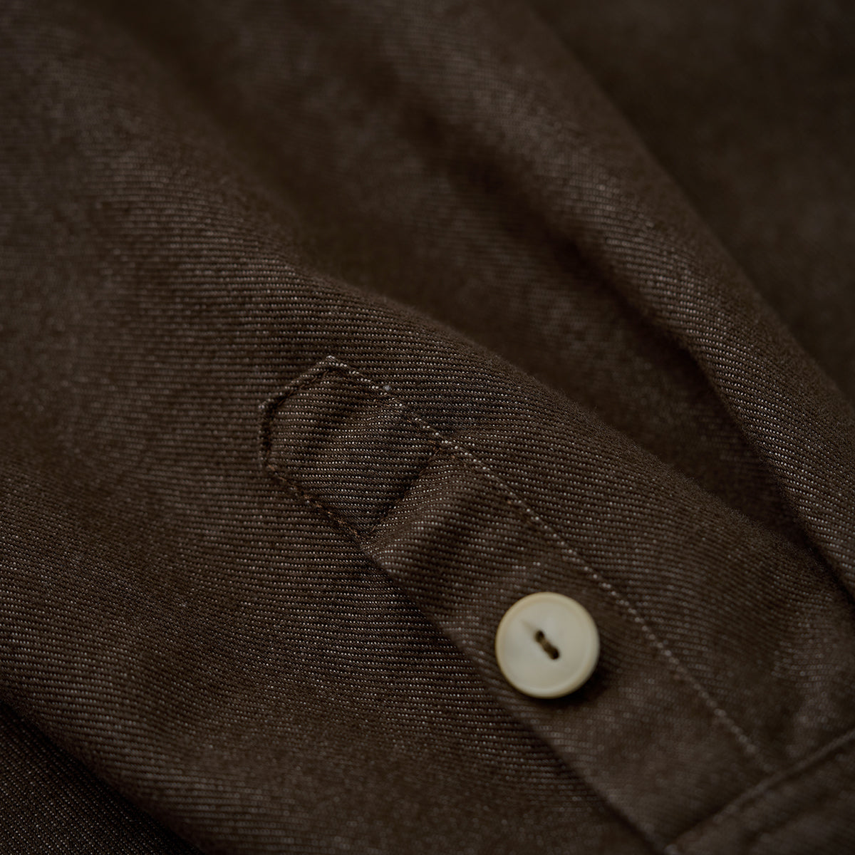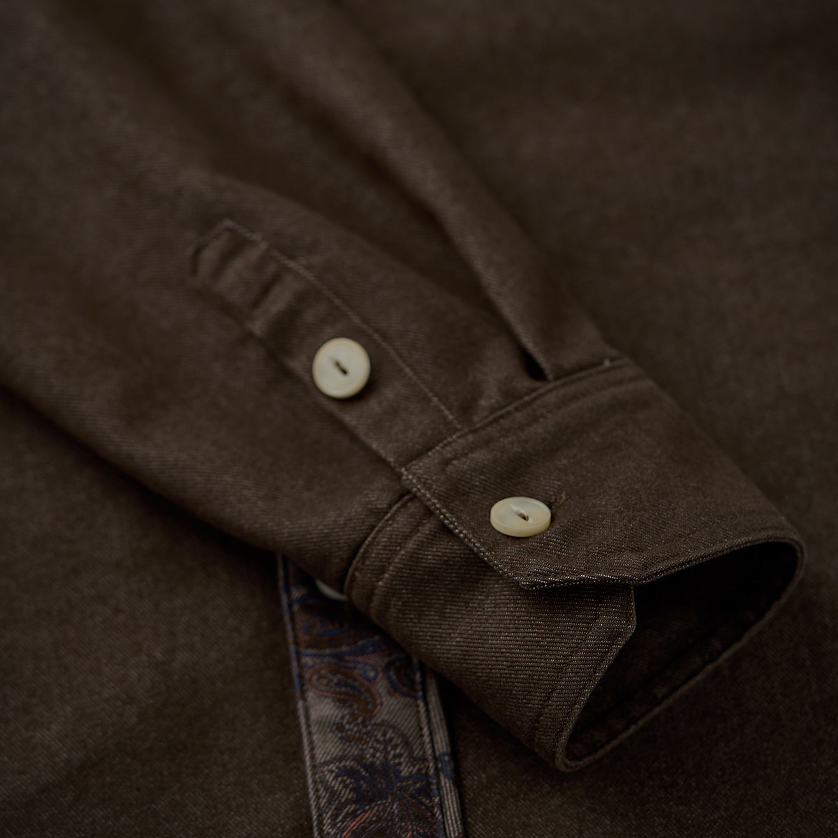 안감, 단추 주변, 소맷단 안쪽에 적용해, 살짝 보이는 패턴으로 심플한 셔츠에 멋을 더했습니다.