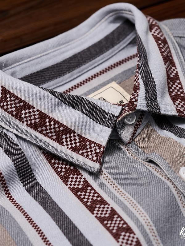멀티 스트라이프 자카드 데님 워크 셔츠