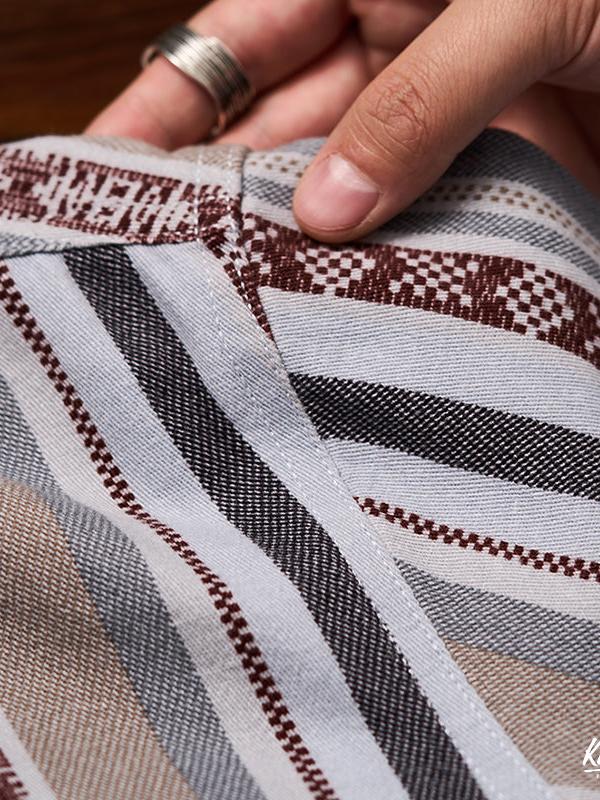 「Karaku」자수 로고 & 에스닉 패턴 안감 텐셀 코튼 긴팔 셔츠
