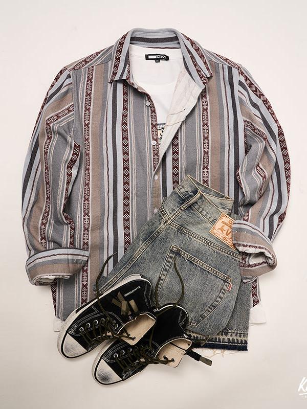 에스닉 멀티 스트라이프 긴팔셔츠