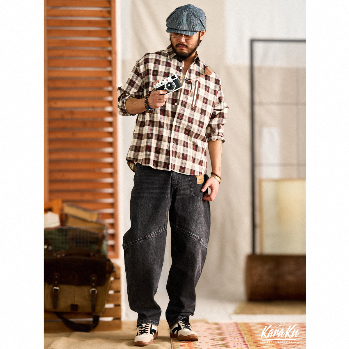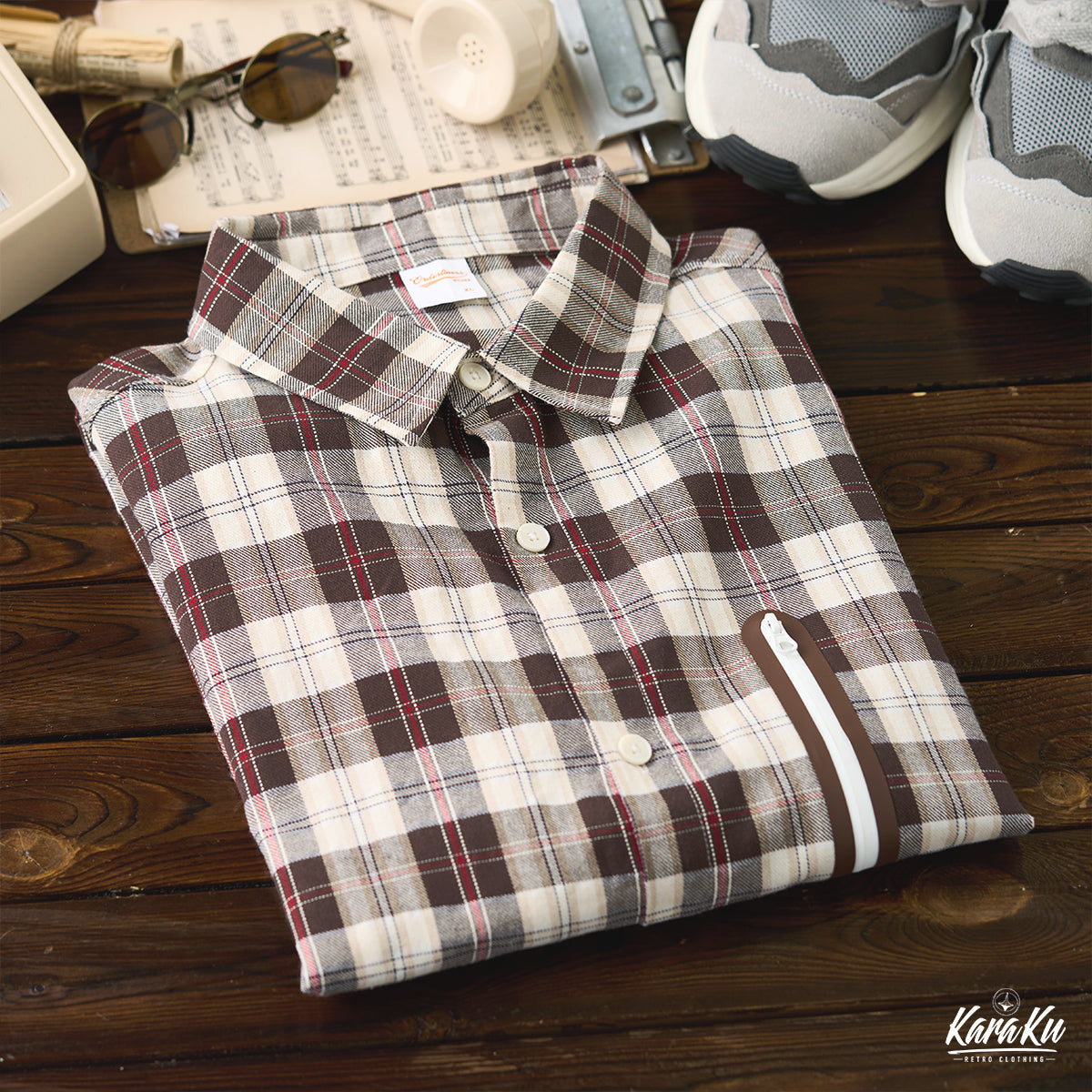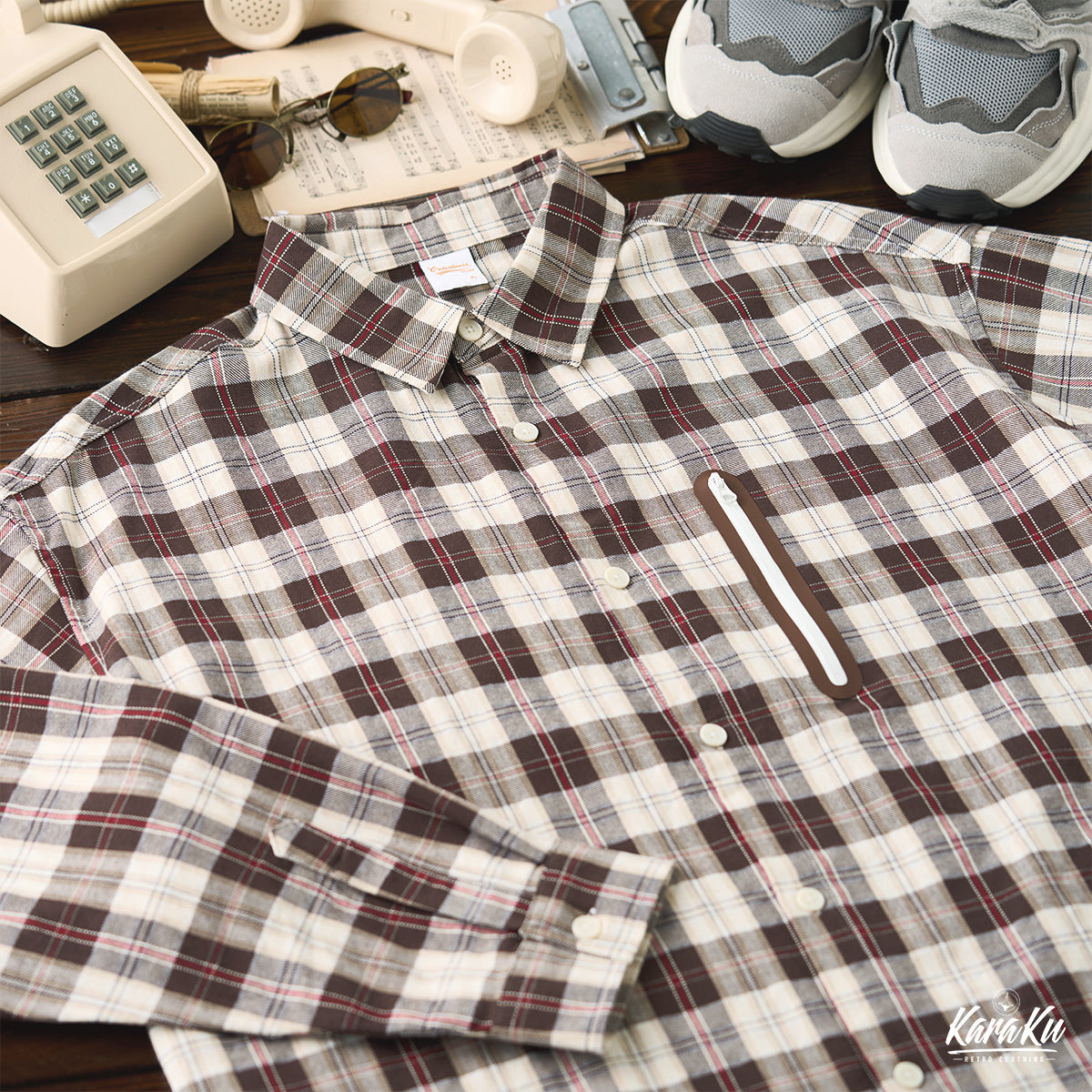 Gorpcore 집포켓 체크무늬 긴팔 셔츠