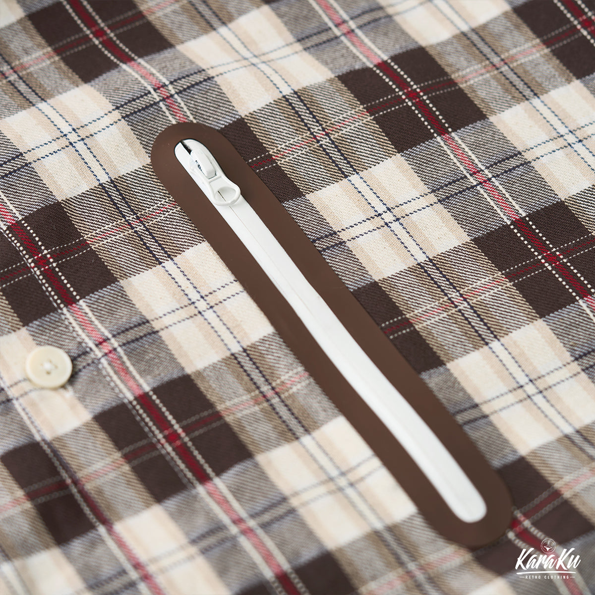 가슴 부분에 지퍼 포켓을 배치하여 디자인 포인트를 주며, 소지품 수납에도 실용적인 기능을 갖추었습니다.