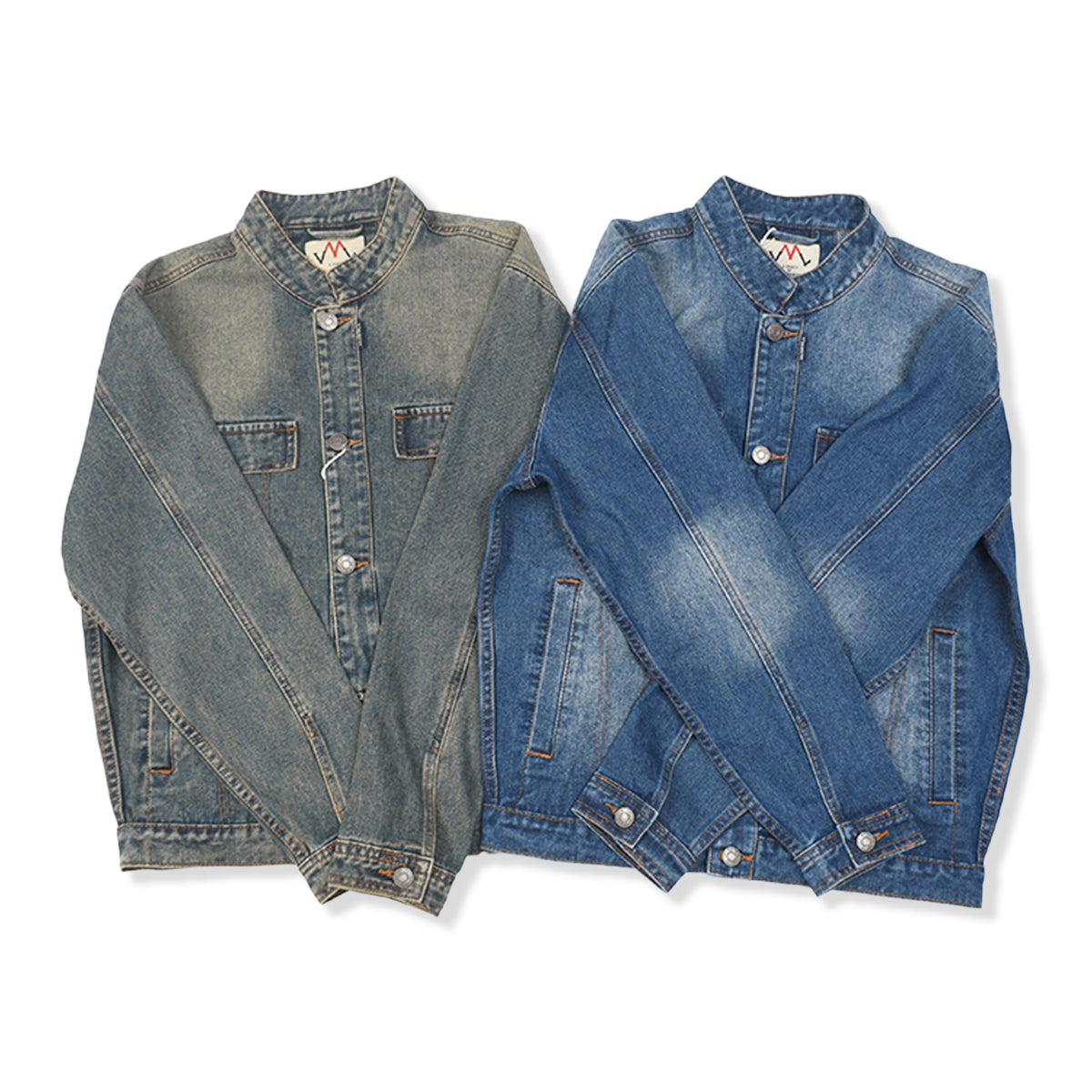 워싱&유즈드 가공 스탠드 칼라 데님 자켓