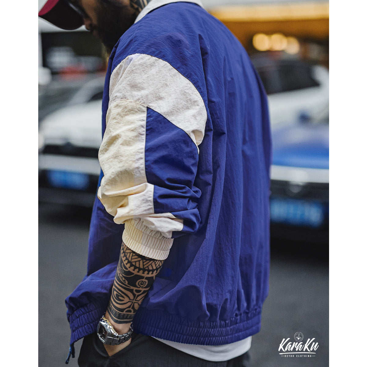 80~90년대 레이싱 팀 자켓 감성의 오버핏 나일론 점퍼로, 빈티지한 스트릿 무드를 연출합니다.