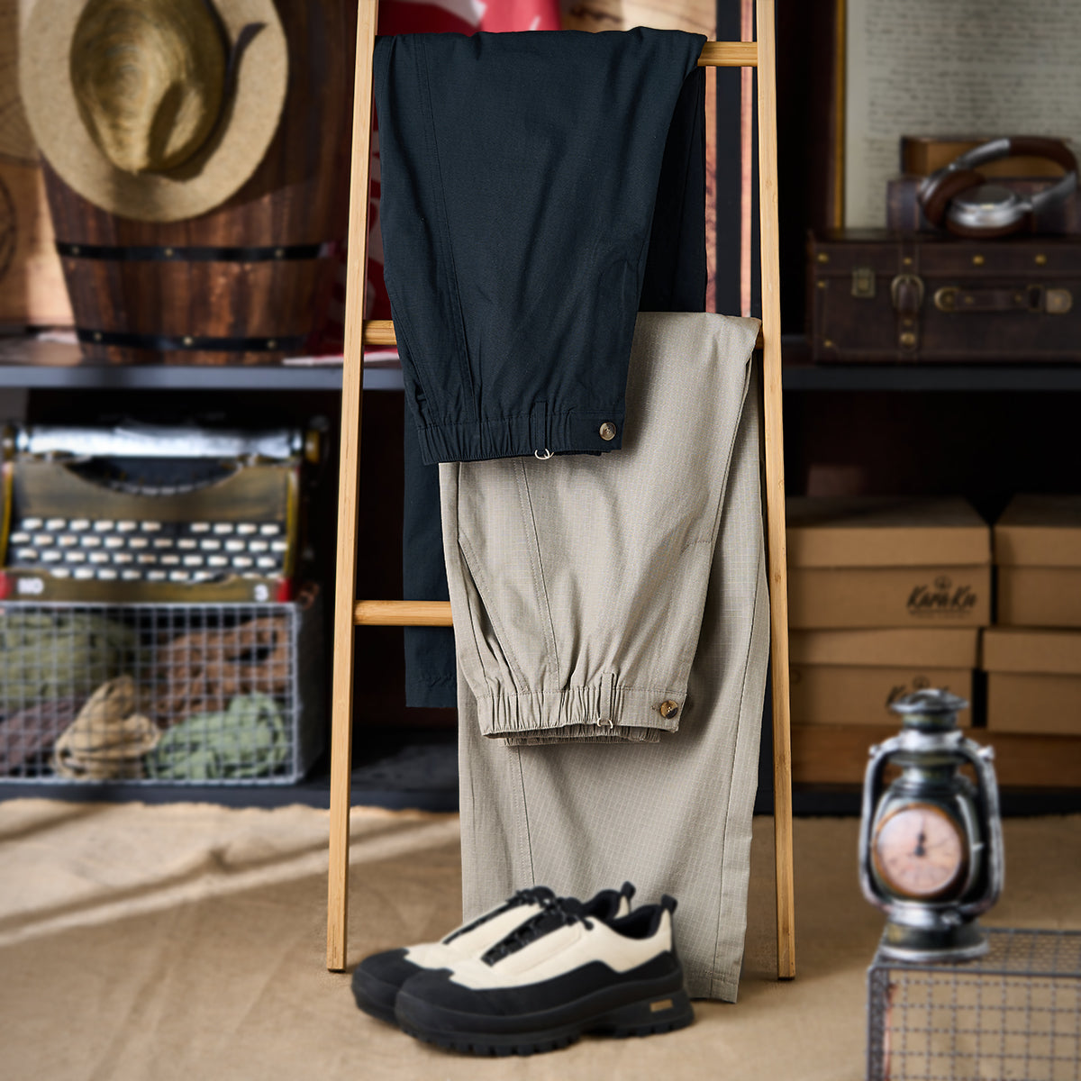 2컬러 무릎 주름 디테일 립스톱 루즈핏 스랙스