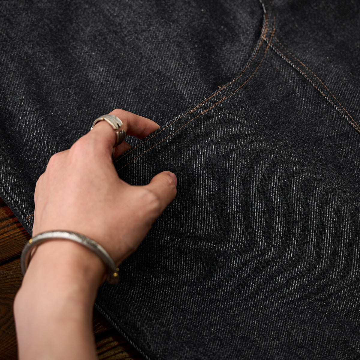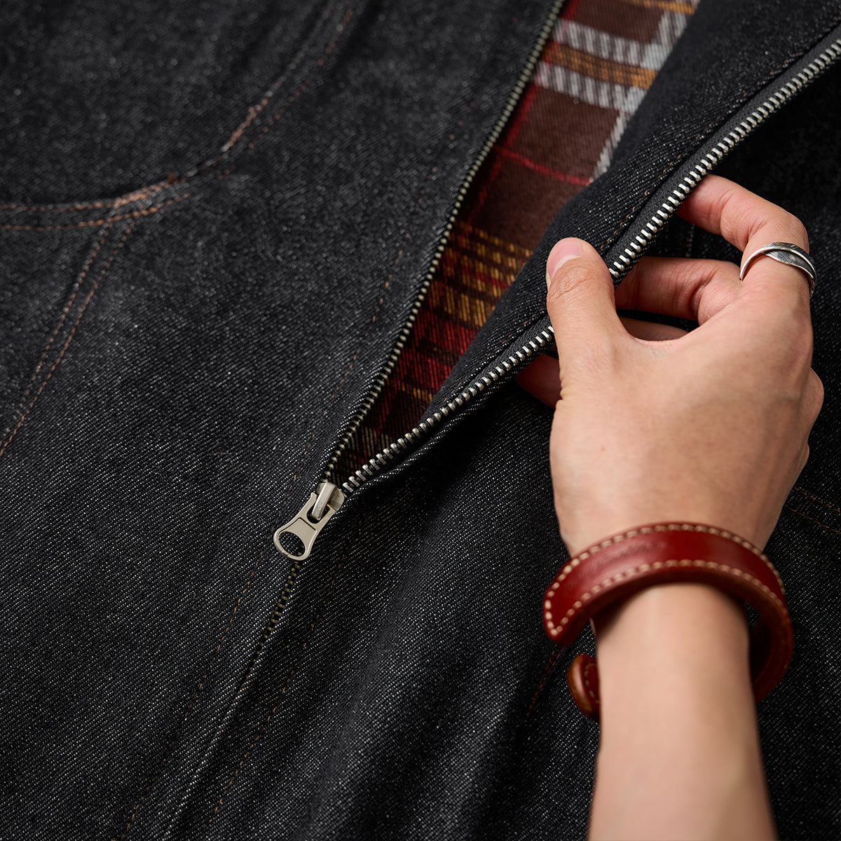 겉감에는 내구성과 가벼움을 겸비한 데님 소재를 사용하고, 안감에는 촉감이 좋은 면 소재를 사용하여 쾌적한 착용감과 보온성을 동시에 갖추었습니다.