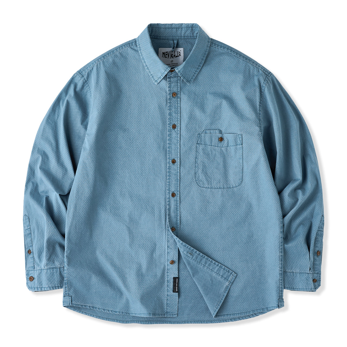 원 포켓 자카드 직조 기하학 패턴 코튼 긴팔 셔츠