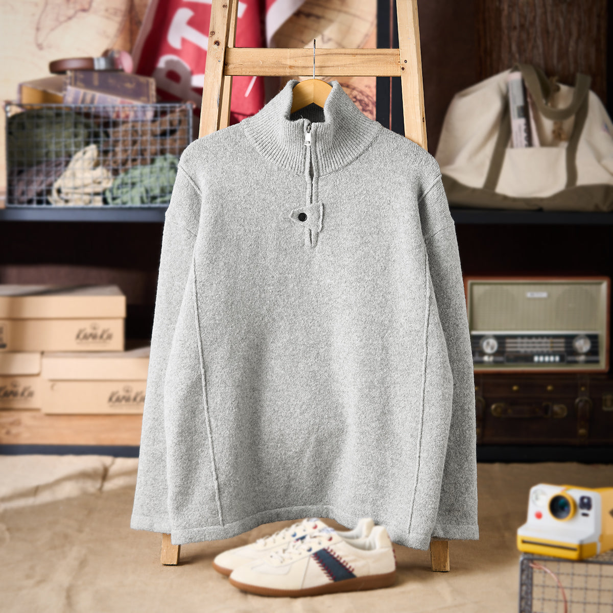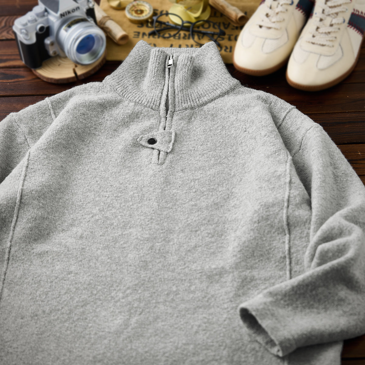 약기모 하프집업 스탠드 칼라 니트 스웨터